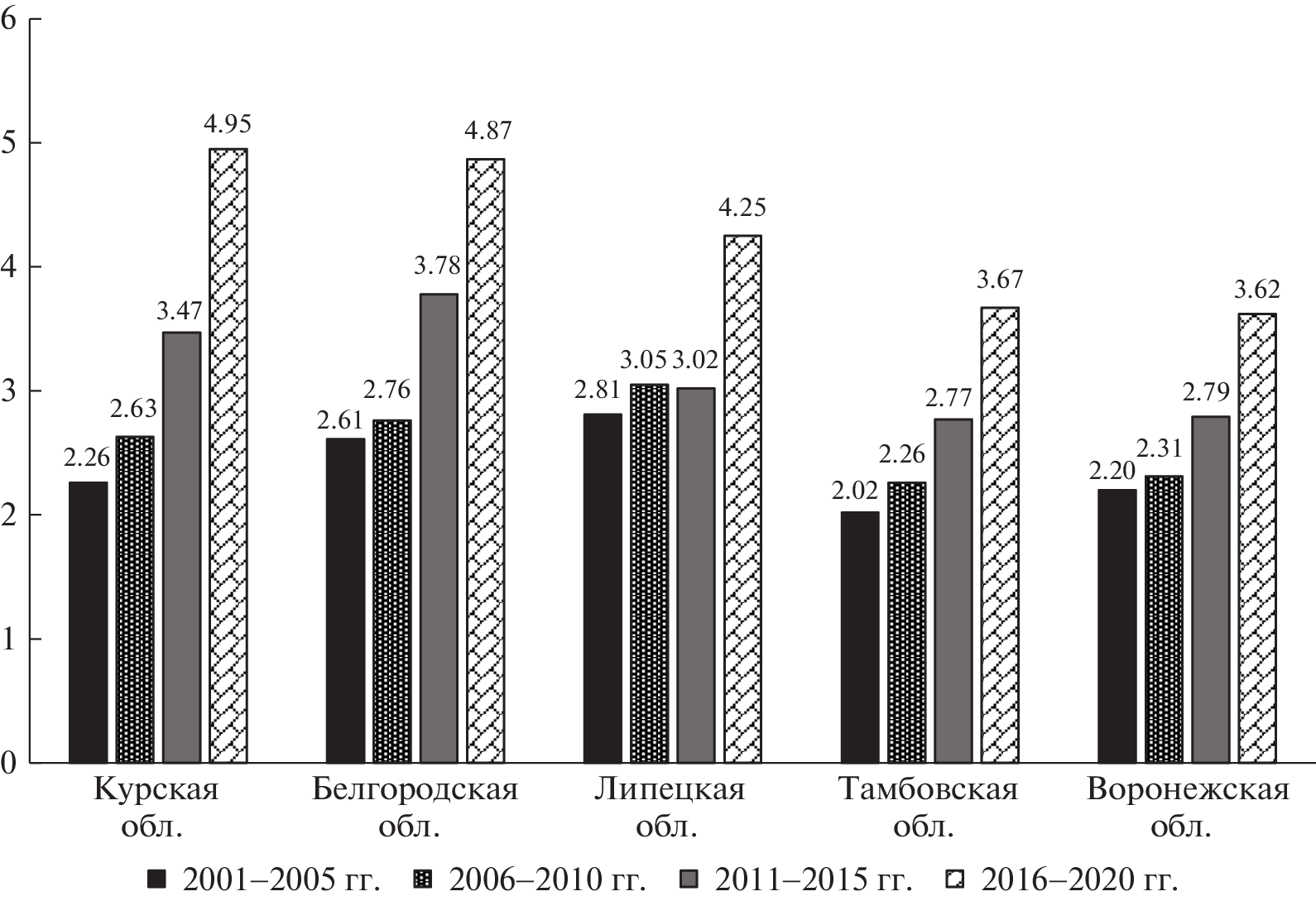 Based on the analysis of the results of agroecological monitoring, it was found that in the Central Chernozem region (CCR) for 2016–2020, compared with 2001–2005, there was a significant increase in the use of mineral fertilizers (1.8–7.8 times) and the volume of chemical soil reclamation (2.3–43.9 times). The highest level of application of mineral fertilizers (156 kg/ha) was achieved in the Kursk region, organic fertilizers (8.83 t/ha) and liming of acidic soils (65.9 thousand hectares per year) – in the Belgorod region. The minimum level of mineral fertilizers (88.1 kg/ha) and liming (13.0 thousand ha) was registered in Voronezh, and the use of organic fertilizers (0.24 t/ha) – in the Tambov regions. Over the same years, the yield of grain and leguminous crops increased by 1.51–2.19 times. The maximum yield was achieved in Kursk (4.95 t/ha) and Belgorod (4.87 t/ha) regions, the minimum – in Tambov (3.67 t/ha) and Voronezh (3.62 t/ha). As of 01.01.2021, the most significant increase in the provision of soils with organic matter, mobile forms of P2O5 and K2O, a decrease in the proportion of acidic soils was noted in the Belgorod region. In arable soils of the Tambov region the maximum weighted average content of organic matter (6.5%) was recorded, the minimum (4.7%) was noted in the Kursk region. The highest content of mobile forms of P2O5 (143 mg/kg) and K2O (169 mg/kg) was observed in the soils of Belgorod, the lowest (respectively 88 and 106 mg/kg) – in the Tambov regions. The highest proportion of acidic soils (77.9%) was recorded in the soils of arable land in the Lipetsk region, while in the Belgorod and Voronezh regions it was 31.0%. Arable soils of the region are mainly characterized by low availability of mobile forms of zinc, copper and cobalt. The highest proportion of soils with low availability of mobile forms of sulfur (95.1%) and manganese (88.3%) was noted in the Tambov region, the lowest – respectively in the Voronezh (74.7%) and Lipetsk (3.1%) regions.