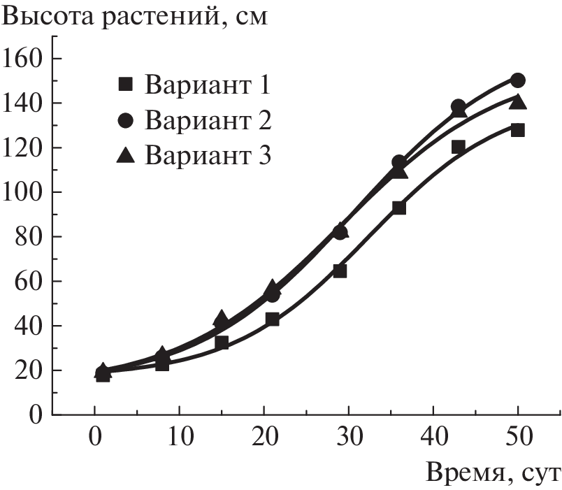 The dynamics of biomass and height of Secale cereale L. plants was studied in a long-term stationary field experiment on sod-podzolic light loamy soil. Systematic application of mineral fertilizers (option 2 – N65P50K50, option 3 – N100P75K75) had a significant impact on the height and biomass of plants at all tested stages of vegetation (eight time points within 50 days). To describe the dynamics of biomass and height of Secale cereale L. plants, sigmoid (logistic) and linear models are well suited, which made it possible to calculate such parameters as maximum biomass and height (M2, g : H2, cm), maximum speed (Vmax, g ⋅ day–1 (cm ⋅ day–1)) and average speed (b, g ⋅ day–1 (cm ⋅ day–1)). The Vmax values of the growth of raw plant biomass in variants 2 and 3 exceeded this indicator for the control variant by 1.7–2.0 times; Vmax of plant height growth varied within 4.2–4.6 cm ⋅ day–1, did not depend on the application of mineral fertilizers. The application of mineral fertilizers led to an increase in the average growth rate of the biomass of plants Secale cereale L. (b, g ⋅ day–1), in relation to the control, by more than 2 times.