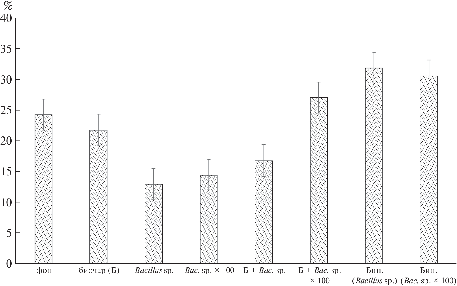 Evaluation of Phytotoxicity of Common Chernozem in the Application of Bacillus sp. and Biochar for Stimulation of Decomposition of Winter Wheat Harvest Residues (Triticum aestivum L.)