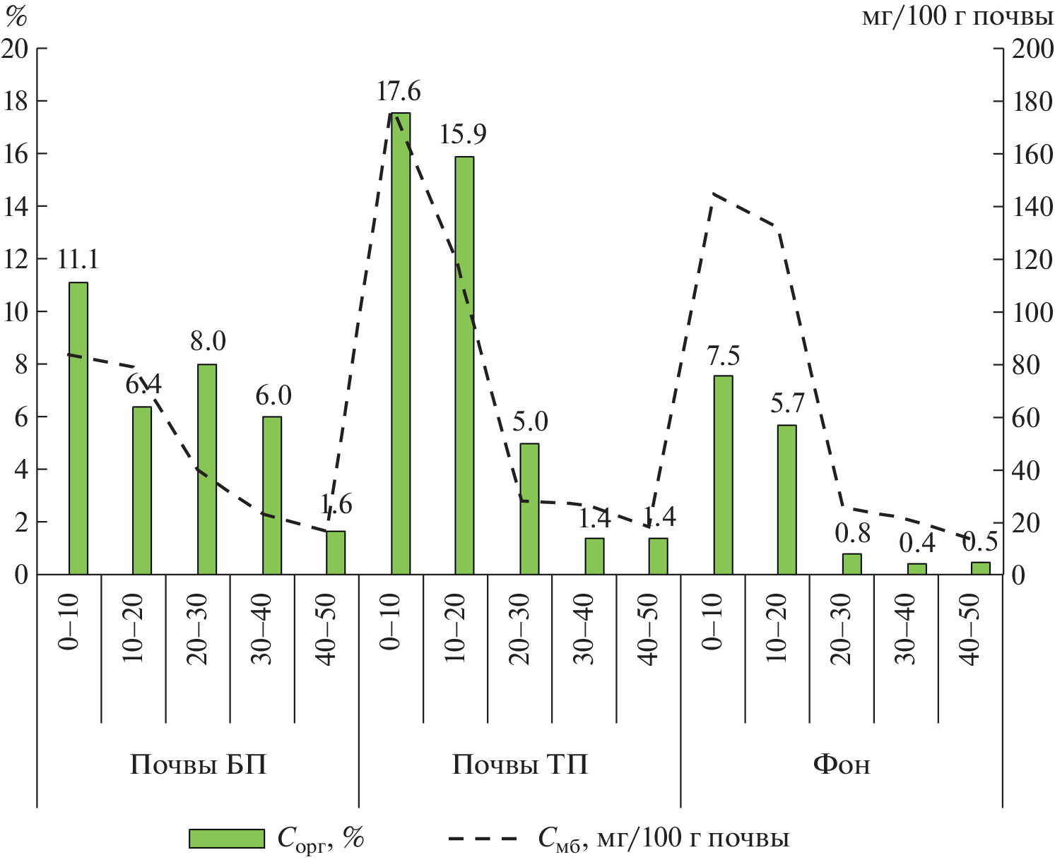 The microbial communities in soils of cryomorphoses in the south of the Vitim Plateau have been studied. The objects of study were gley cryoturbated chernozems and humus-quasi-gley carbonated soils. In the course of the study, experimental sites with pronounced cryogenic phenomena were selected. The intensity of microbiological activity was determined by the carbon content of microbial biomass, the number of microorganisms in the dominant groups of microbial communities. Determination of the number of microorganisms in soils was carried out by direct microscopy, which makes it possible to carry out a more accurate count of bacteria in the soil, taking into account adsorbed cells. Cells were preliminarily desorbed on an ultrasonic disperser. The carbon of microbial biomass was determined by the rehydration method. Data were obtained characterizing the direction and intensity of microbiological processes along the horizons of soil profiles of heaving mounds and thermokarst depressions. The number of microorganisms and the dominant groups of bacterial communities of soils formed under the conditions of the ultracontinental climate of Buryatia and relatively close-lying permafrost are presented. It was revealed that bacterial microflora predominates in the soils of heaving mounds and thermokarst depressions. The intra-profile heterogeneity in the distribution of soil microorganisms indicates that, as a habitat, the soil is strongly differentiated in all directions. This differentiation along the vertical of heaving mound and thermokarst depression was reflected in the concept of soil horizons as special ecological niches and the possibility of using microbiological indications of heaving and subsidence occurring during heaving.