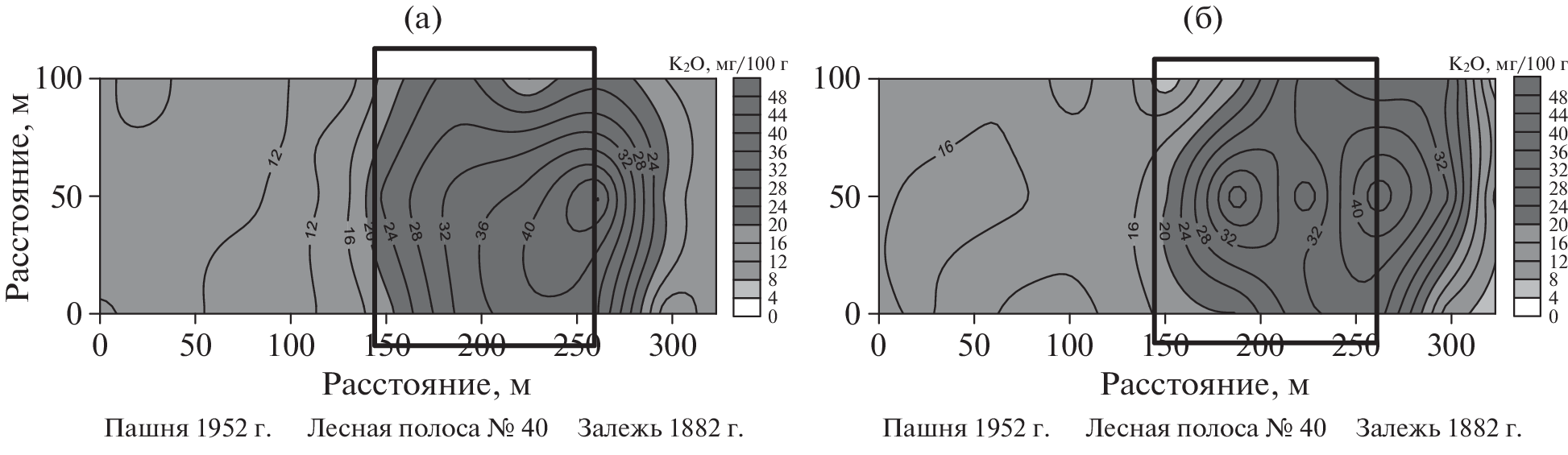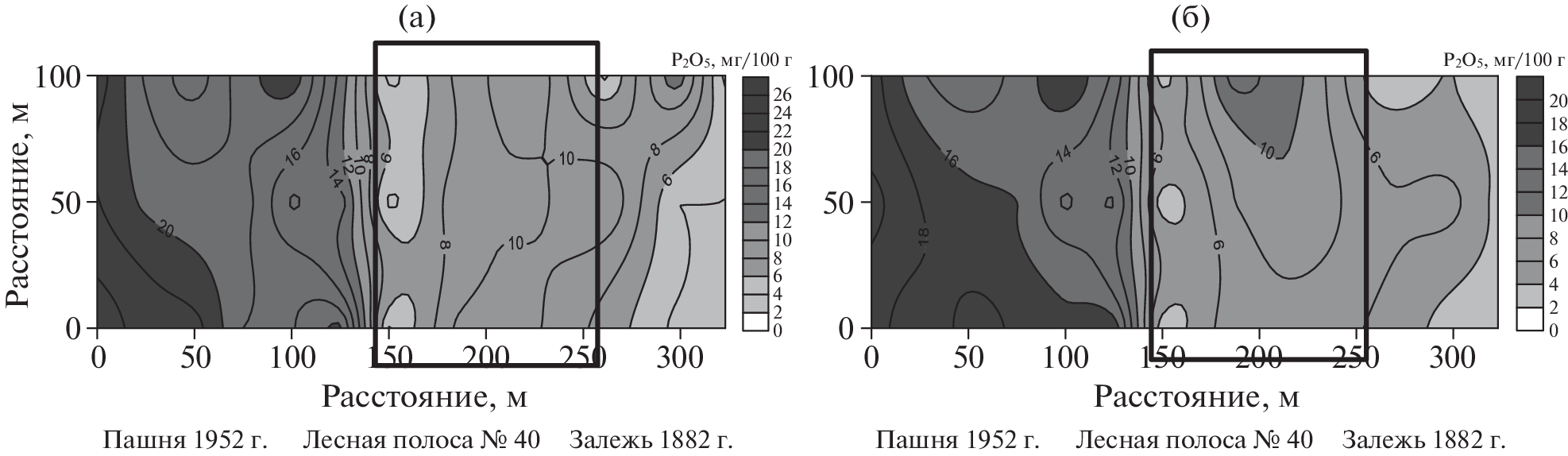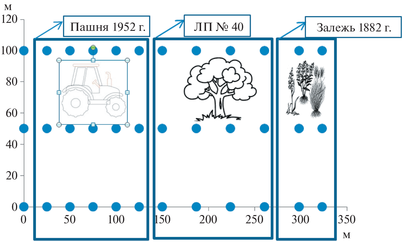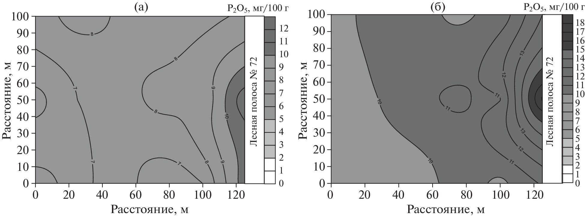 Within the framework of the program on the subject of the state task in 2021–2022, studies were conducted on changes in the indicators of effective fertility in space and time under the influence of forest strips of various landscape accessories (forest strip No. 40 on the watershed, forest strip No. 72 on the slope). All works were performed in the Voronezh FASC named after V.V. Dokuchaev. It was found that the soils of the watershed area were characterized by the greatest availability of mobile phosphorus and exchangeable potassium. The provision of soils with nitrate nitrogen during the growing season in the watershed and slope areas was at the same level. The watershed area was characterized by a decrease in the amount of mineral elements on the soils of the deposit and the edges of the forest strip No. 40. As for the forest strip itself, the maximum indicators were noted in the center of the forest strip, gradually decreasing in the direction of the edges. Considering the indicators of fertility of arable land, it was noted that they increase at a distance from the forest strip, their maximum was detected at a distance of 75–150 m from the forest strip. On the arable land adjacent to the Baltic forest strip No. 72, an increase in the content of mobile phosphorus and exchangeable potassium was noted when approaching the forest strip. The content of nitrate nitrogen, on the contrary, decreased downhill, reaching a minimum near the forest strip. It is proved that by the end of the growing season, the content of nitrate nitrogen and exchangeable potassium increased in the watershed, and the content of mobile phosphorus decreased. At the slope site, by the end of the growing season, there was an increase in all the studied fertility indicators.
