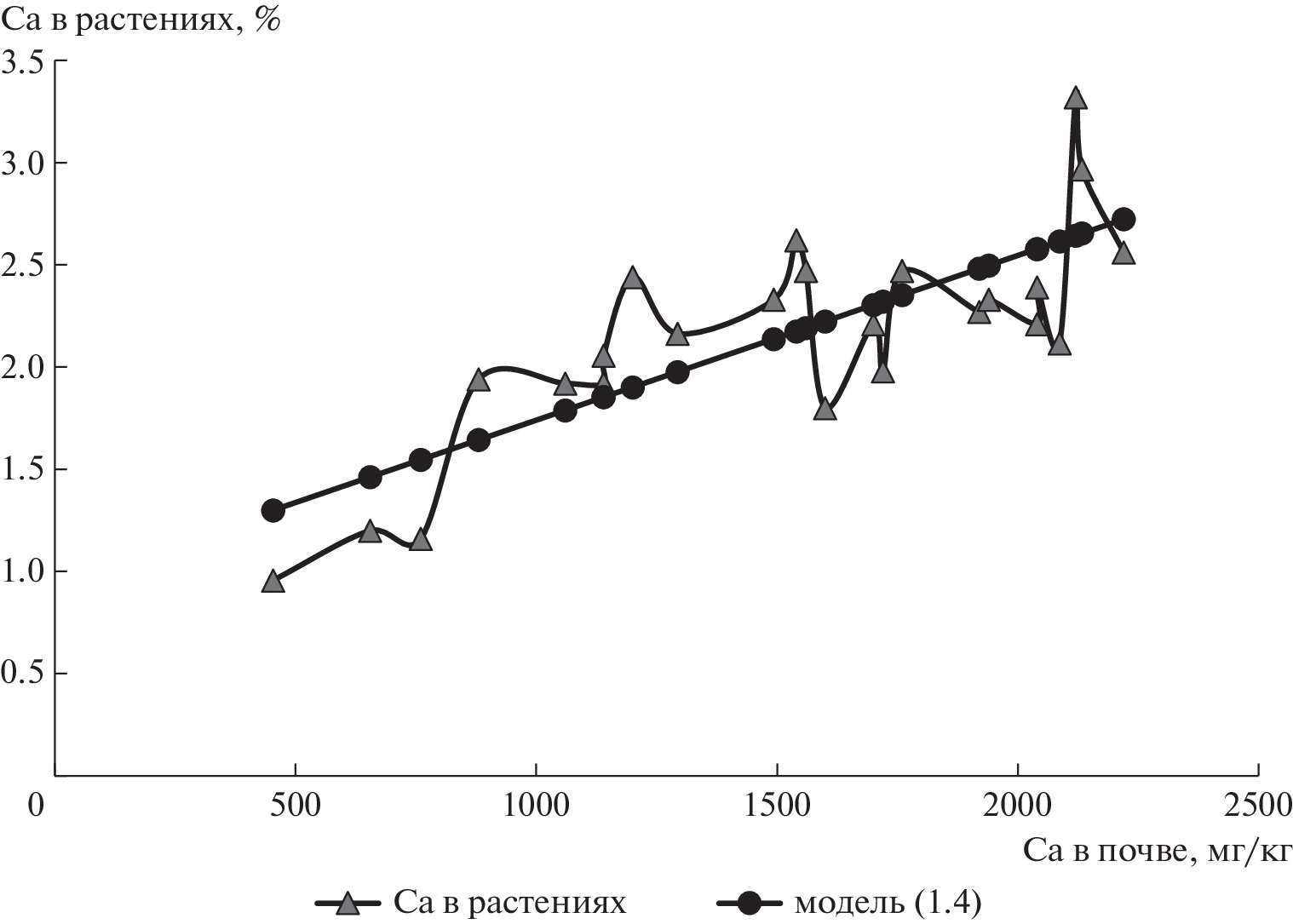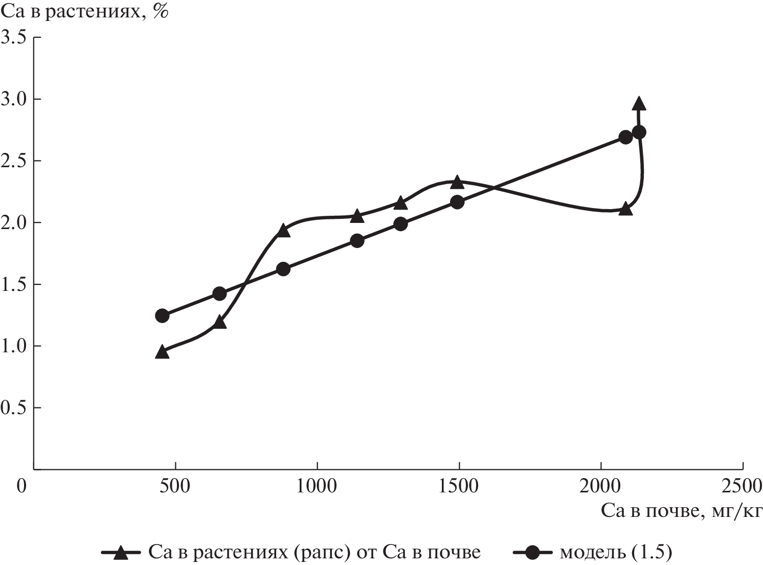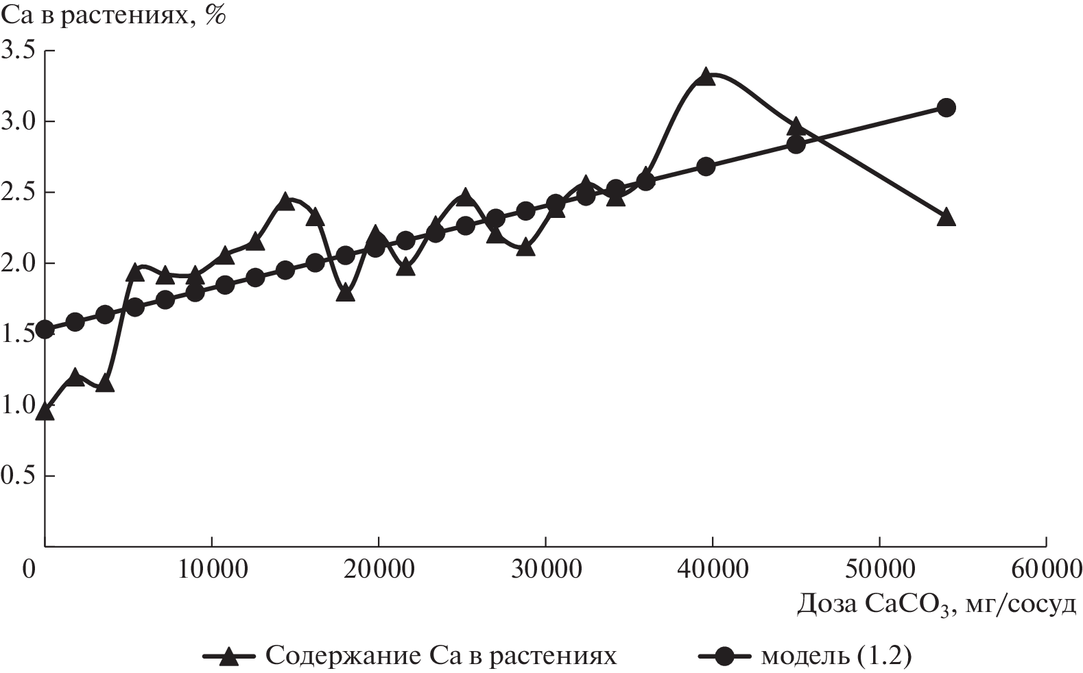In a 24-year vegetation precision experiment based on acidic sod-podzolic sandy loam soil reclaimed with conversion chalk (CC) in a wide dose range, the effect of liming on the content of calcium available to plants in the soil and its translocation into rapeseed tissue was established. The results showed that rapeseed is an ecologically plastic plant species. An increase in the amount of chalk introduced from 0.1 to 3 full doses calculated by hydrolytic acidity led to an increase in the Ca concentration in rapeseed in the liming year from 0.81 to 3.14%. Empirical dependences of calcium concentration in soil and plants on the dose of chalk application have been developed. 3 approaches to the analysis of experimental data describing the relationship of calcium content in the soil with its accumulation in plant tissues are considered. It is shown that artificial averaging of the data on the calcium content in the soil with the same dose of meliorant in individual repetitions led to loss of information, which was reflected in the statistical characteristics of the constructed empirical models.