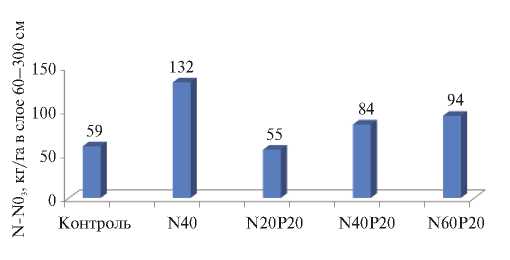 Лишний азот, не использованный растениями, с осадками мигрировал вниз по профилю почвы. Наибольшими оказались потери в варианте применения дозы азота N60Р20.