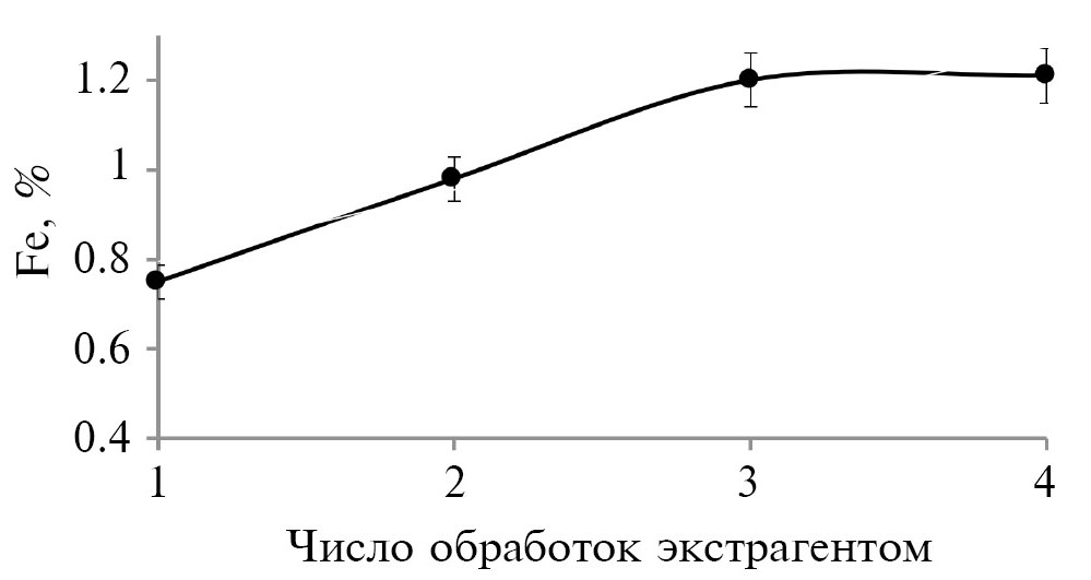Рис. 1. Зависимость результата определения Fe в ЦБД-вытяжке от количества обработок образца почвы.