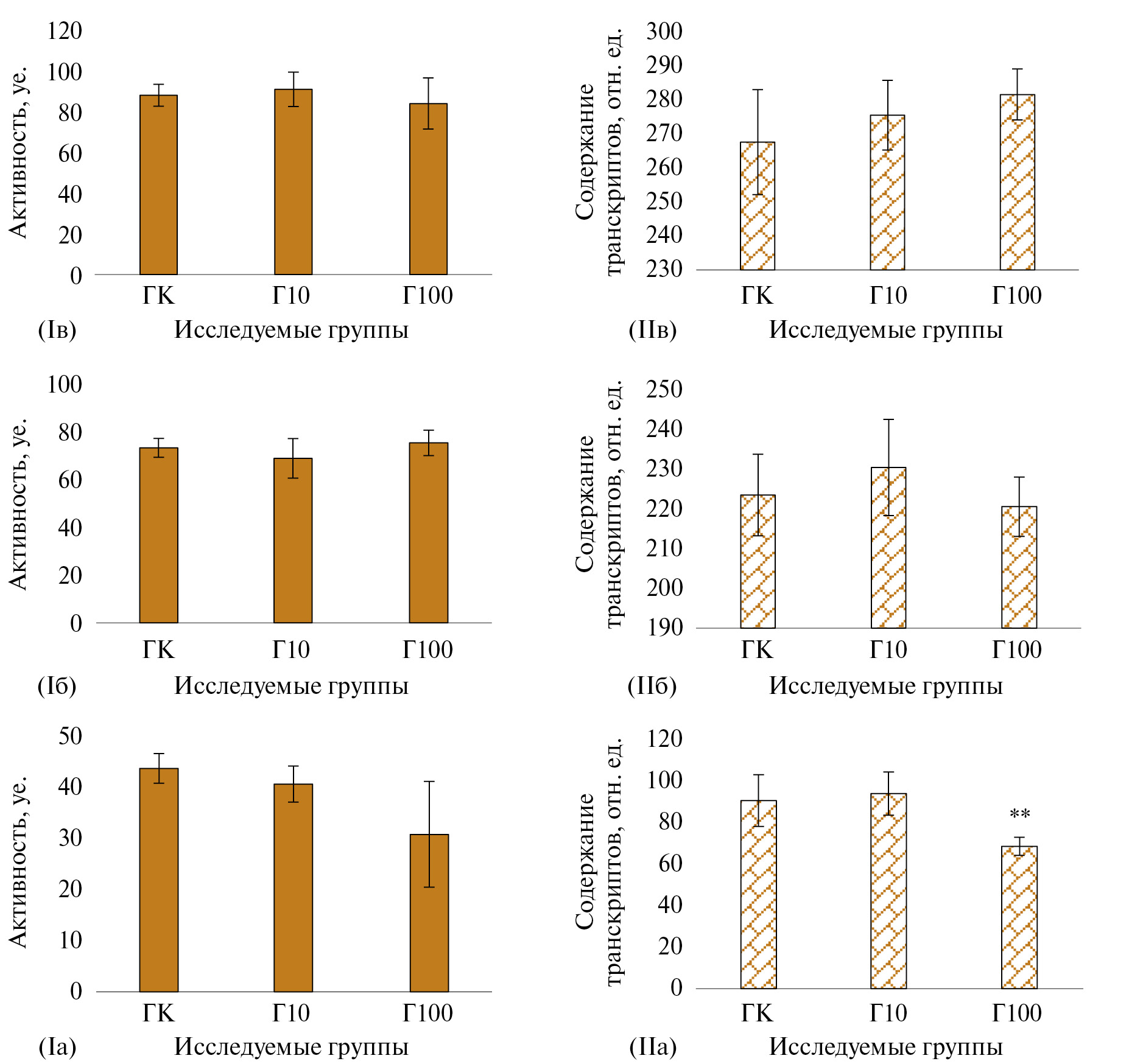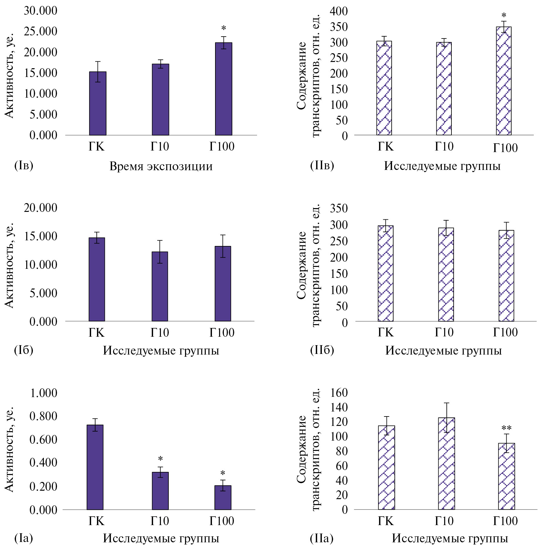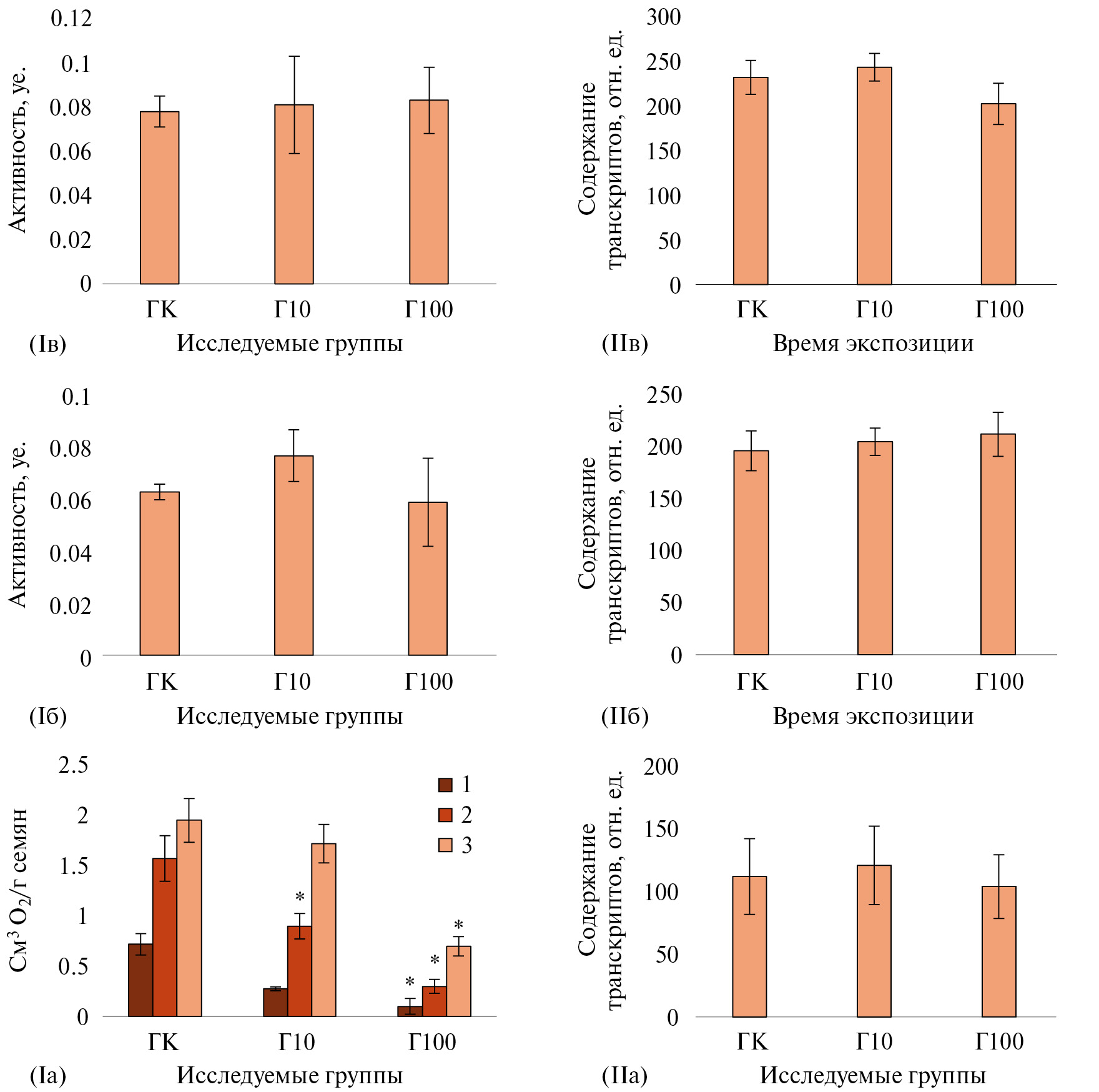 Г100 | *0.021 ± 0.004 | 0.127 ± 0.002 | *0.207 ± 0.003 |
