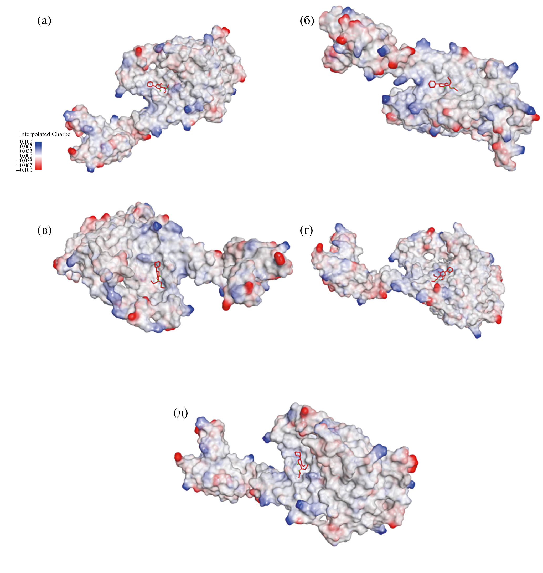 При визуализации полученных комплексов удалось отследить изменения в положениях лиганда относительно белка-мишени (рис. 1).
