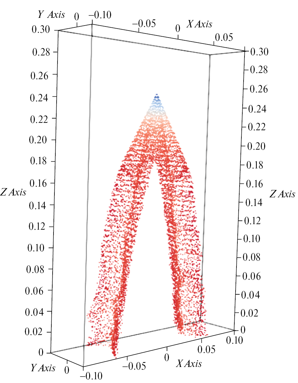 Динамика движения капель описана по второму закону Ньютона с учетом гравитационной силы, силы градиента давления и силы сопротивления потока. Капли рассматривались как сферы, распределение которых было описано с помощью градиентного подхода, т. е. капли тяготели в области малых значений турбулентной кинетической энергии. Интенсивность испарения была определена согласно модели теплопередачи Ранза–Маршалла, которая учитывает вклад перегрева капель и газовой фазы относительно температуры кипения.