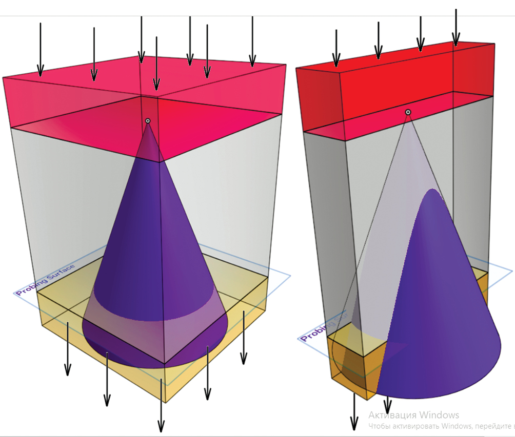 После оптимизации расчетная область представляла собой параллелепипед X×50×300 мм, где габарит X определялся по выражению (1).