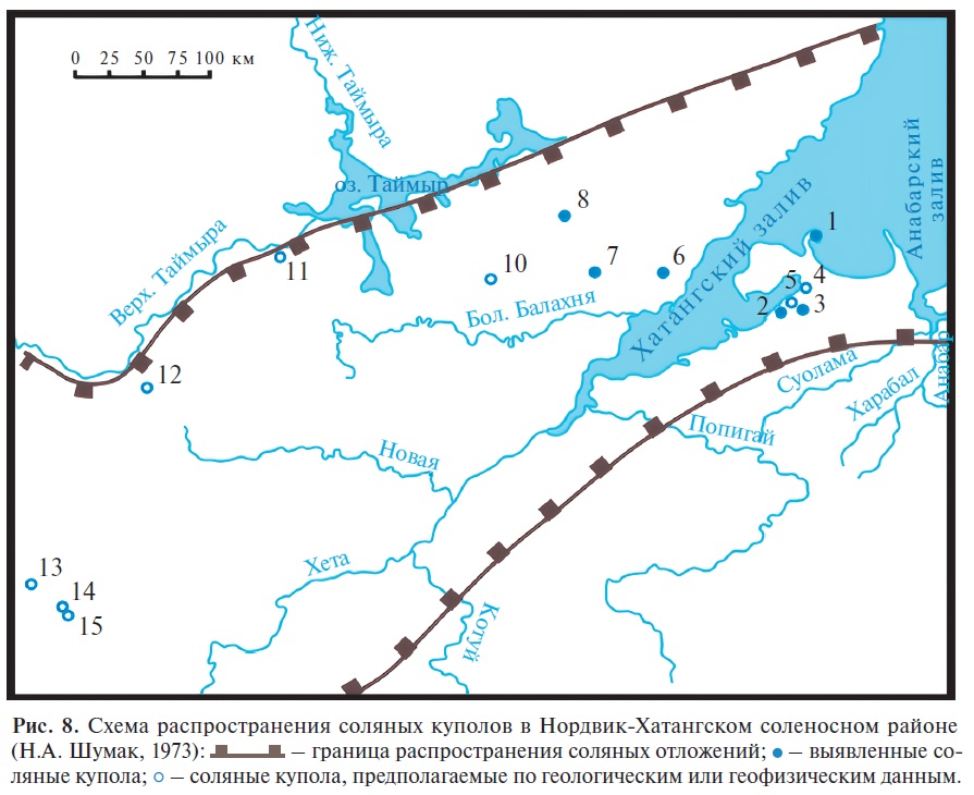 Кроме того, проведенные геологические и геофизические исследования показали, что девонские соленосные отложения распространены на значительной территории бассейна реки Хатанги.