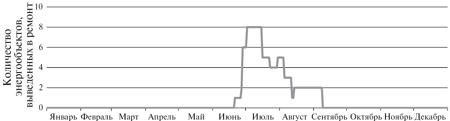 - Если сформированный график ремонтов оборудования является относительно “плотным” и возможности для переноса сроков ремонта не существует, то для рассматриваемой ЭЭС, в рамках планирования ее работы, требуется предусмотреть дополнительные управляющие воздействия, компенсирующие вывод оборудования в ремонт.