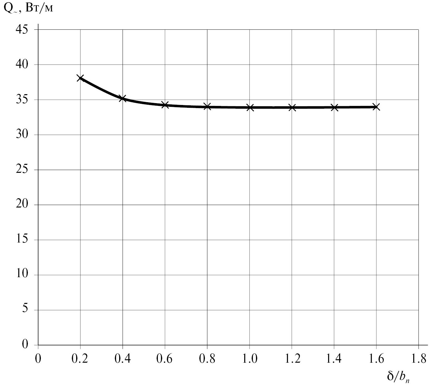 Практически в электрических машинах с открытой конструкцией паза якоря величина параметра δ/bп всегда более 0.6, что связано с необходимостью снижения потерь на поверхности сердечника ротора от гармонических якоря зубцового порядка, необходимостью наличия большого воздушного зазора, который определяет такие параметры, как отношение короткого замыкания и статическая перегружаемость (синхронные машины), отвечающие за устойчивость работы машины в сети. Величина потерь в области достижения характеристикой Q = f(δ/bп) установившегося характера представлена в табл. 1 (п.4).