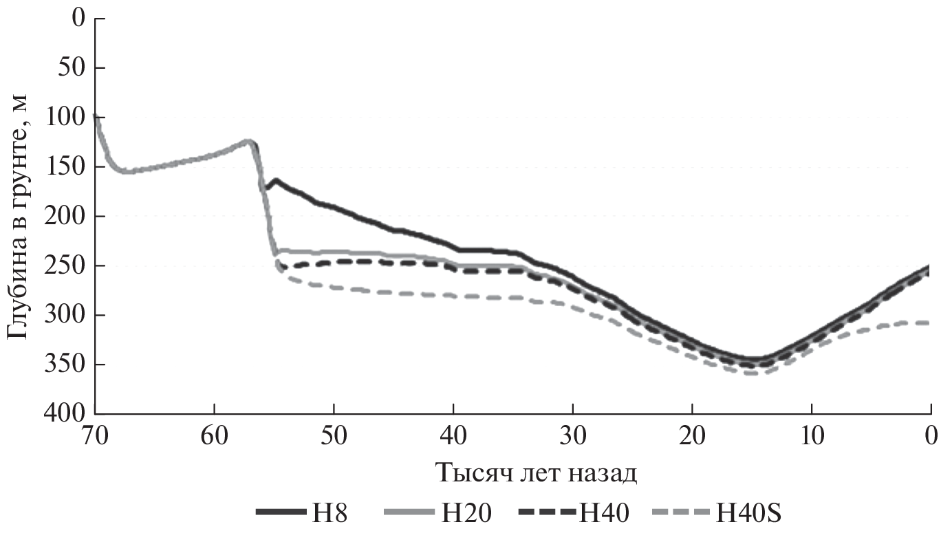 - Malakhova V.V., Eliseev A.V. Uncertainty in temperature and sea level datasets for the Pleistocene glacial cycles: Implications for thermal state of the subsea sediments // Glob. Planet. Chang. 2020. V. 192. P. 103249.