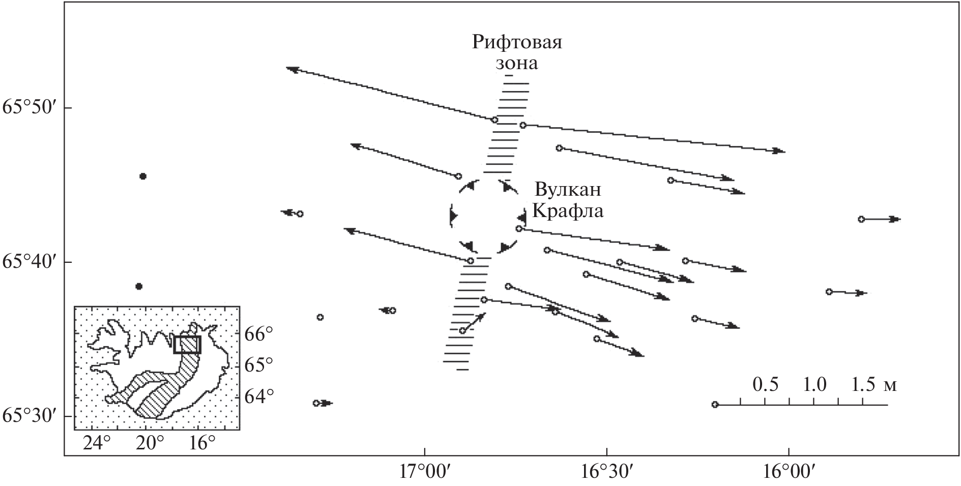 - Wendt K., Moller D., Ritter B. 1985. Geodetic measurements of surface deformations during the present rifting episode in NE Iceland // J. Geoph. Res. 1985. V. 90. № B12. P. 10163–10172.