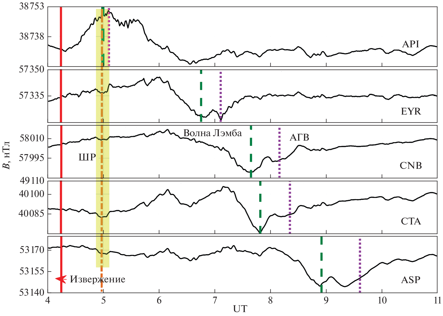 - Vergoz J., Hupe P., Listowski C., Le Pichon A., Garcés M.A., Marchetti E., Labazuy P., Ceranna L., Pilger C., Gaebler P., Näsholm S.P., Brissau Q., Poli P., Shapiro N., De Negri R., Mialle P. IMS observations of infrasound and acoustic-gravity waves produced by the January 2022 volcanic eruption of Hunga, Tonga: A global analysis // Earth and Planetary Sciences Letters. V. 591(4). https://doi.org/10.1016/j.epsl.2022.117639
