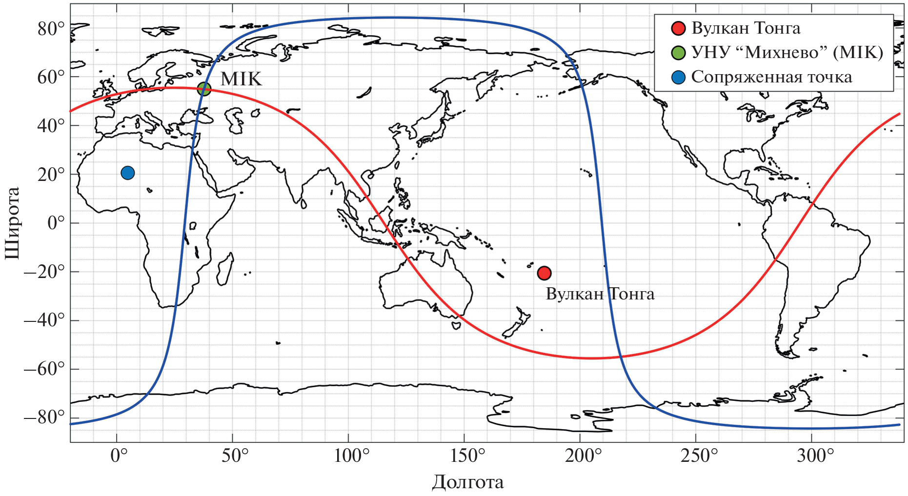 - Zhang S.-R., Vierinen J., Aa E., Goncharenko L.P., Erickson P.J., Rideout W., Coster A.J., Spicher A. Tonga Volcanic Eruption Induced Global Propagation of Ionospheric Disturbances via Lamb Waves // Front. Astron. Space Sci. 2022. V. 9. P. 871275. https://doi.org/10.3389/fspas.2022.871275