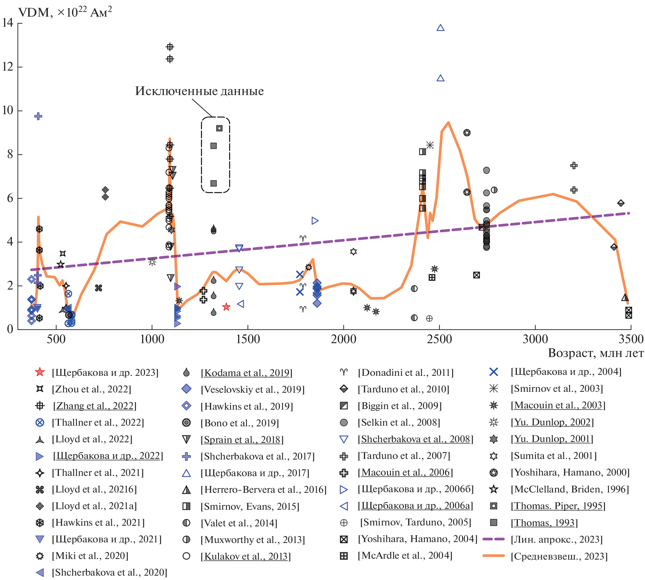 - Valet J.-P., Besse J., Kumar A., Vadakke-Chanat S., Philippe E. The intensity of the geomagnetic field from 2.4 Ga old Indian dykes // Geochemistry, Geophysics, Geosystems. 2014. V. 15. № 6. P. 2426–2437. https://doi.org/10.1002/2014gc005296