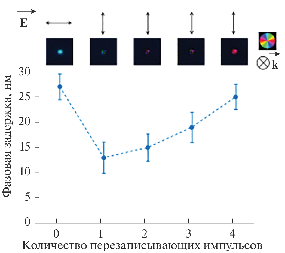 Изучена динамика развития структуры двулучепреломляющих лазерно-индуцированных модификаций в нанопористом стекле в зависимости от количества записывающих фемтосекундных импульсов. Обнаружена трансформация эллиптической полости, вытянутой перпендикулярно поляризации записывающего лазерного пучка, в двулучепреломляющую нанорешетку, которая сопровождается увеличением фазовой задержки. Продемонстрирована возможность перезаписи структур путем изменения ориентации их медленной оси двулучепреломления, что обуславливает перспективность применения высококремнеземистых нанопористых стекол в качестве носителей информации с возможностью перезаписи.