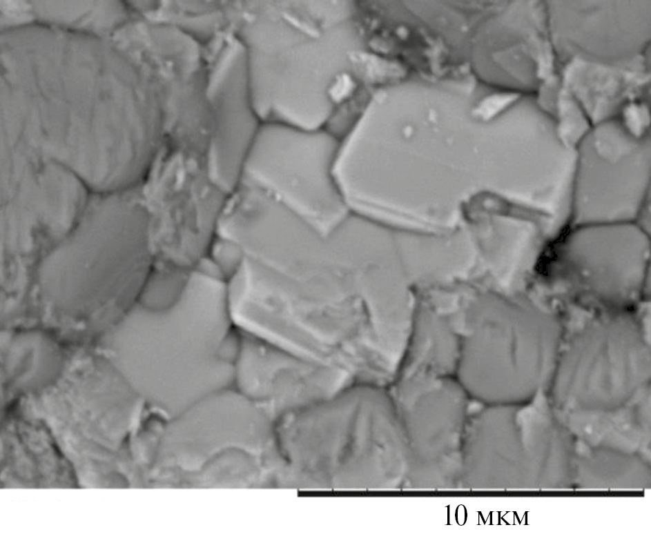 Рис. 10. Микрофотография образца, содержащего 2 мас.% Li2CO3, после обжига при 950°С в течение 1 ч.