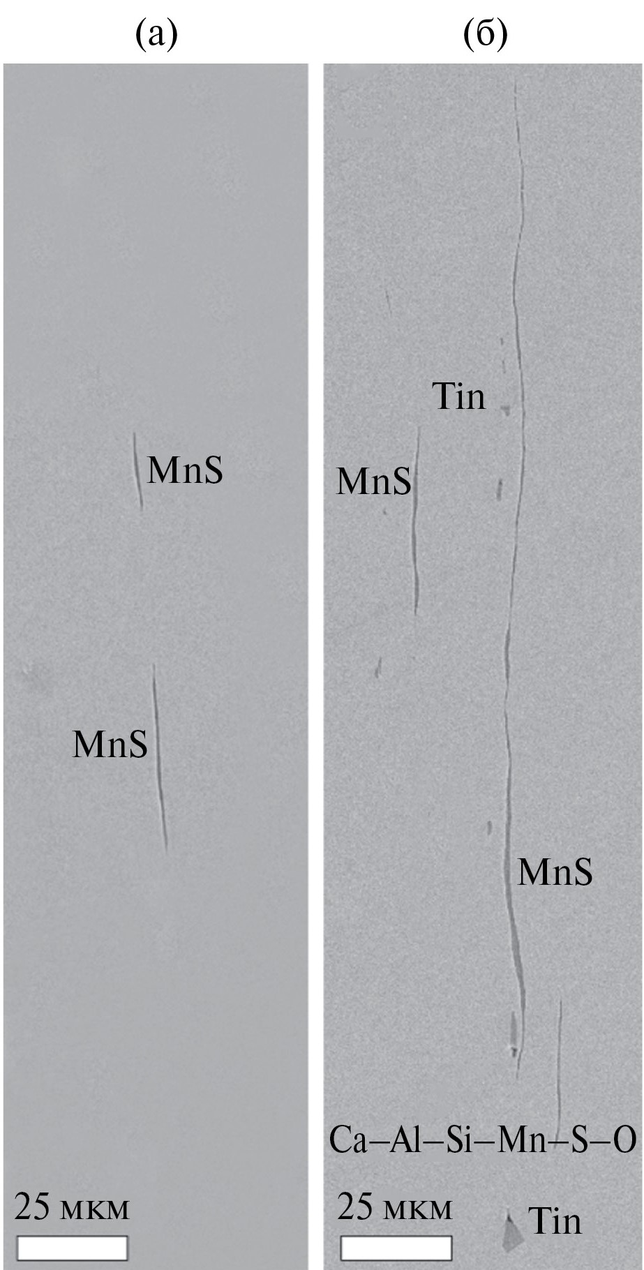 в поле напряжений MnS | с Ca–Al–Si–Mn–S–O | с TiN | ||