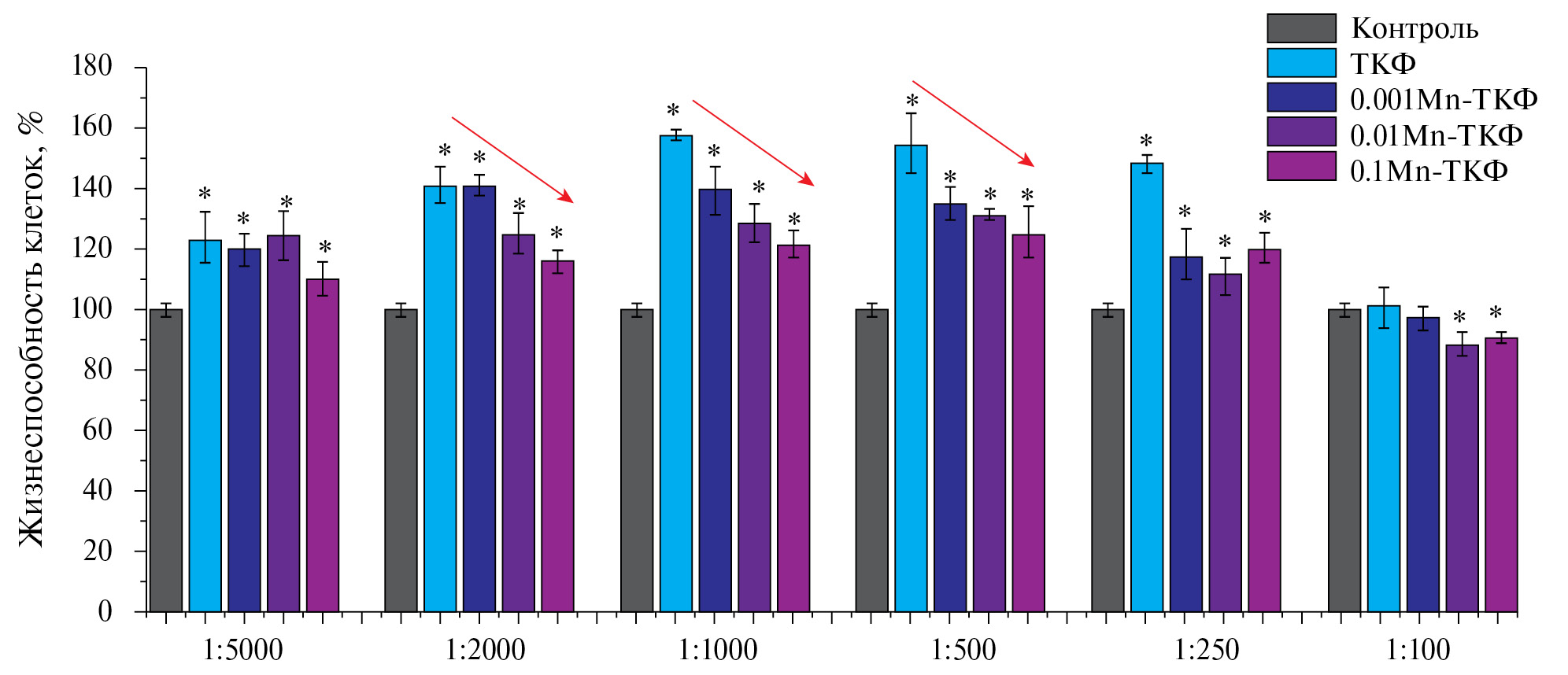 Были синтезированы серебро-замещенные ТКФ с различным содержанием серебра [8–10]. Показано, что токсический эффект проявляется при концентрации серебра более 0.5 мас.%. Представлены результаты исследований in vitro серебросодержащего ТКФ (Ag-ТКФ). Установлено, что биоматериал не проявляет радикалобразующей активности. Ag-ТКФ оказывает бактериостатическое действие на Staphylococcus haemolyticus и Escherichia coli. Доказан дозозависимый эффект Ag-ТКФ в отношении антибактериальных и цитотоксических свойств. Установлено, что ТКФ с расчетным замещением 0.5 мас.% характеризуется умеренной цитотоксичностью при сохранении антибактериальных свойств.