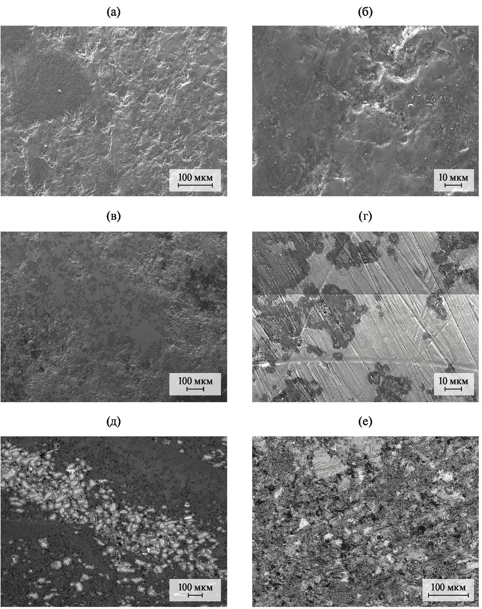 Рис. 8. Микроструктура VNC/LSS (а, б), VC/LSS (в, г) и VCС/LSS (д, е).