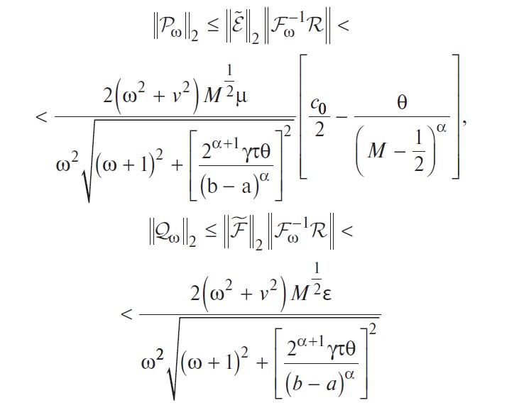 Теорема 1. Пусть ℛ ∈ ℝ2M×2M – матрица системы (2.4), 𝒯 ∈ ℝ2M×2M и 𝒟∈ ℝ2M×2M – блочные матрицы, образующие разбиение ℛ в (2.5). Если ω – положительная константа, то итерационный метод NASS (2.7) корректно определен, а матрица итераций ℒω задается (2.8). Спектральный радиус ρ(ℒω) ограничен: