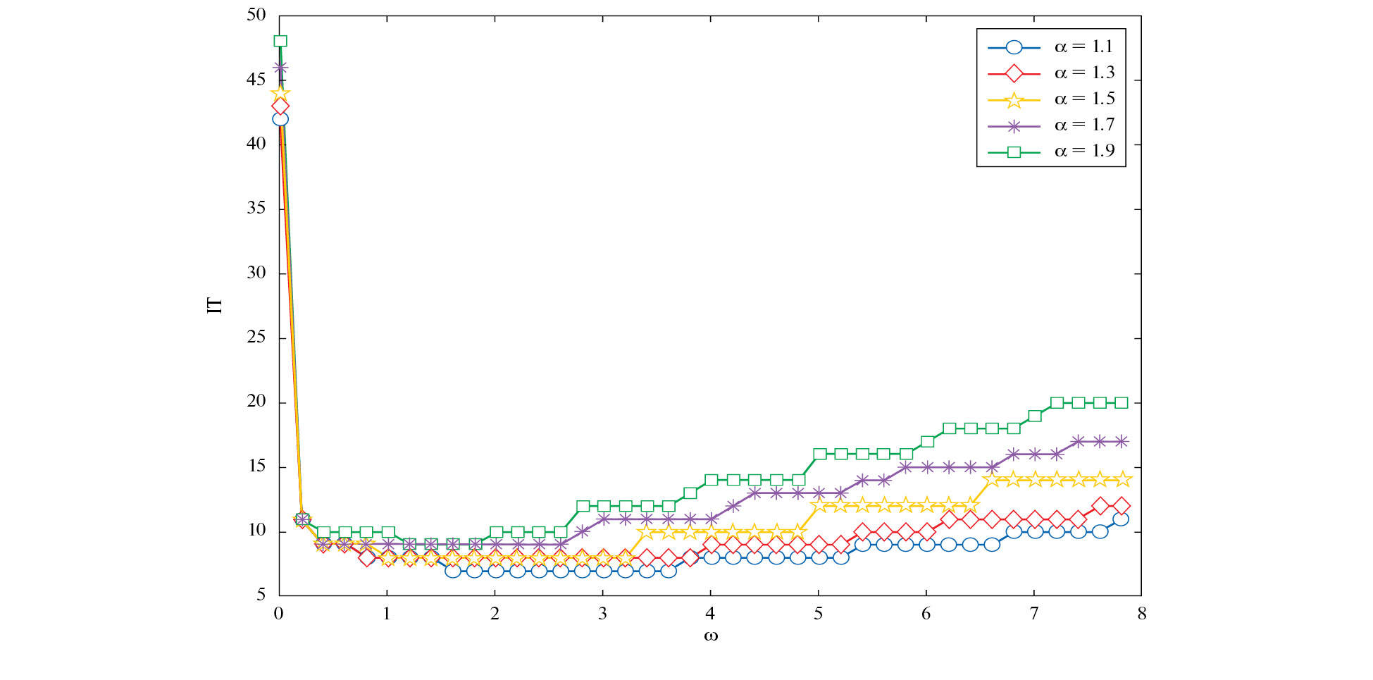 Таблица 8. Эмпирические оптимальные параметры CNAS-GMRES при α = 1.1 : 0.2 : 1.9, N = 200