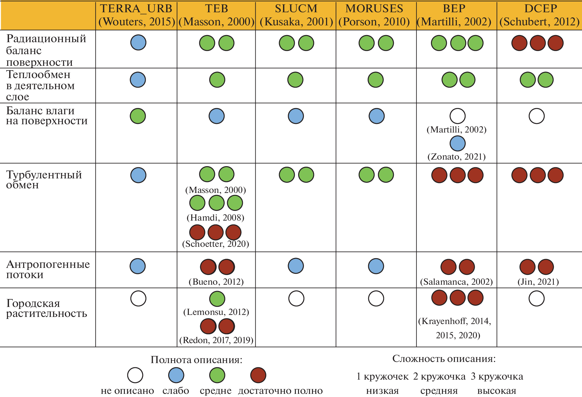 - Grimmond C.S.B., Blackett M., Best M., Barlow J., Baik J.-J., Belcher S., Bohnenstengel S.I., Calmet I., Chen F., Dandou A., Fortuniak K., Gouvea M.L., Hamdi R., Hendry M., Kondo H., Krayenhoff S., Lee S.-H., Loridan T., Martilli A., Masson V., Miao S., Oleson K., Pigeon G., Porson A., Salamanca F., Shashua–Bar L., Steeneveld G.-J., Tombrou M., Voogt J., Zhang N. The international urban energy balance models comparison project: First results from Phase 1 // Journal of Applied Meteorology and Climatology. 2010. V. 49. P. 1268–1292.