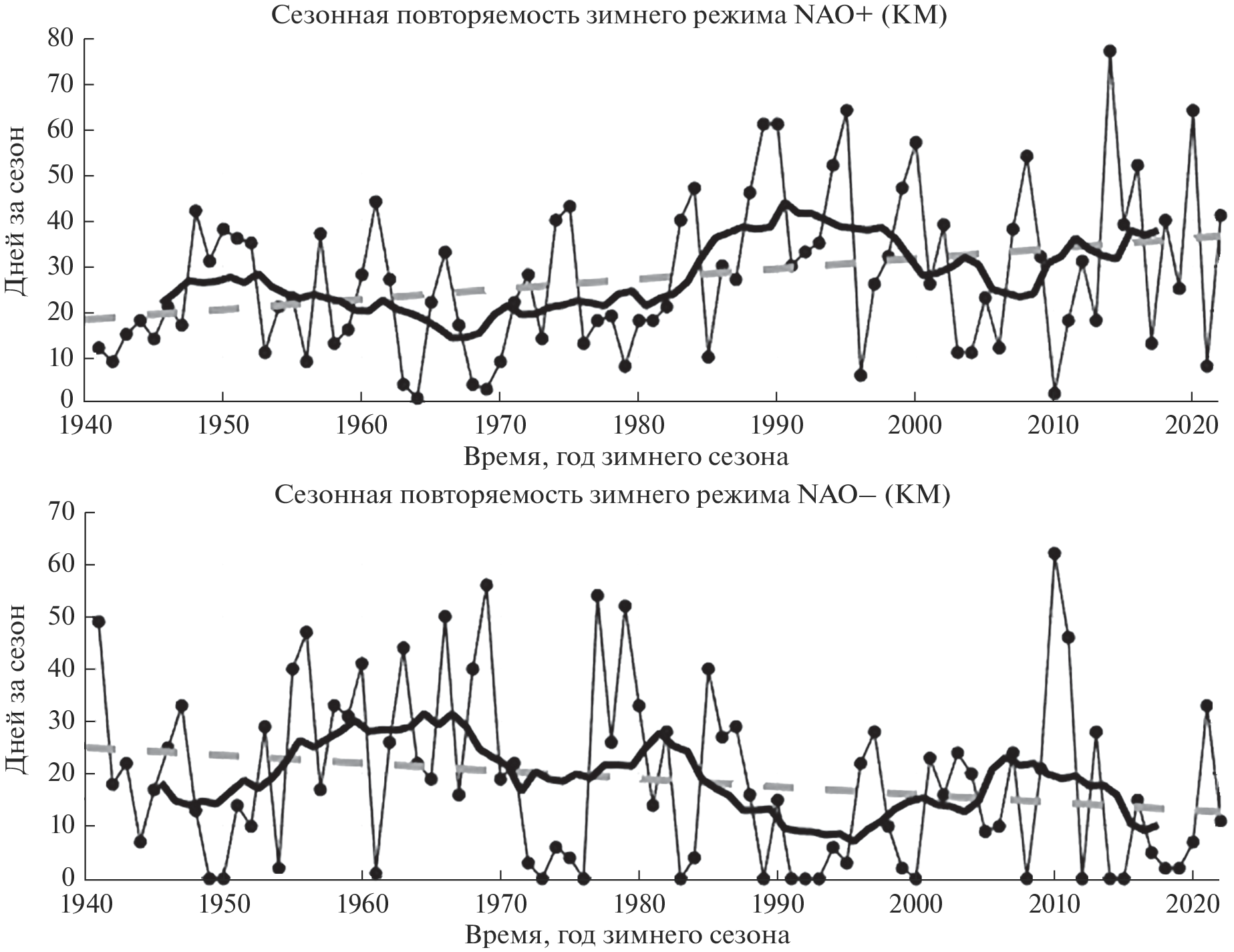- Molteni F., Tibaldi S., Palmer T.N. Regimes in the wintertime circulation over northern extratropics. I: Observational evidence // Quarterly J. Royal Meteorological Society. 1990. V. 116. № 491. P. 31–67.