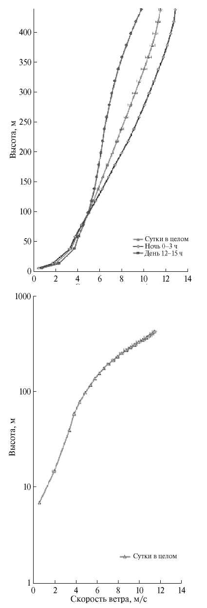 - Высота обращения дневного и ночного профилей ветра в среднем за несколько лет составляет для условий Москвы приблизительно 100 м.
