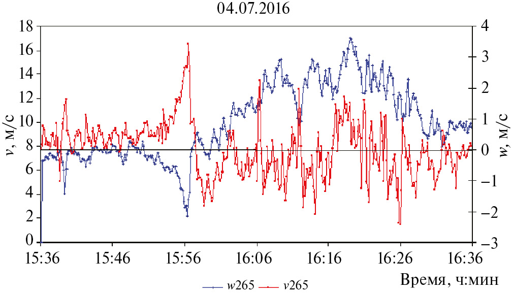 Для получения первичной информации использовалась ВММ Института экспериментальной метеорологии ФГБУ “НПО “Тайфун” [Новицкий и др., 2018]. ВММ относится к группе специализированных высотных метеорологических мачт [Иванов, 1970], предназначена для проведения широкого комплекса метеорологических исследований (312 м, 13 уровней). Основное преимущество такой ВММ в возможности фиксировать структуру шквала в 300-метровом слое, в частности, по структуре поля скорости ветра, по форме усиления ветра, и, в особенности, по вертикальной компоненте скорости ветра в 300-метровом слое во время прохождения кучево-дождевых облаков. В этом слое происходит взлет и посадка самолетов, поэтому существенны сведения о восходящих и нисходящих потоках.
