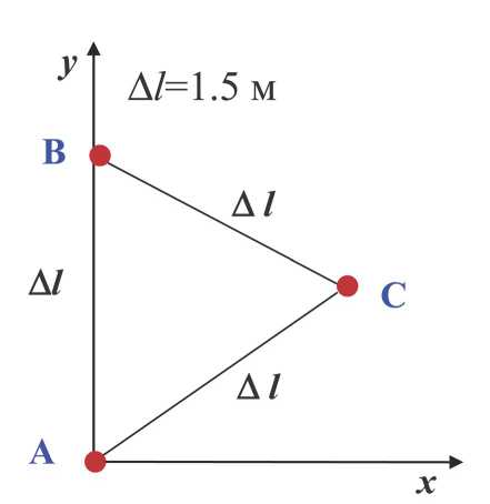 Рис. 2. Схема антенны из трех датчиков. Ось Ox направлена на восток, ось Oy – на север.