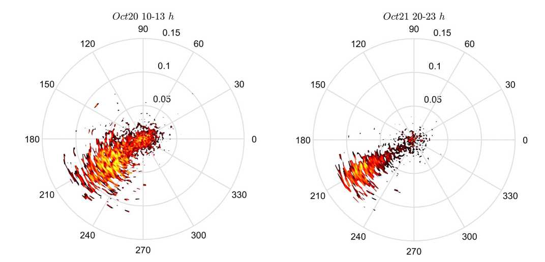 Рис. 13. Примеры спектров направленных волн S(k,θ) для измерений в первые двое сут.