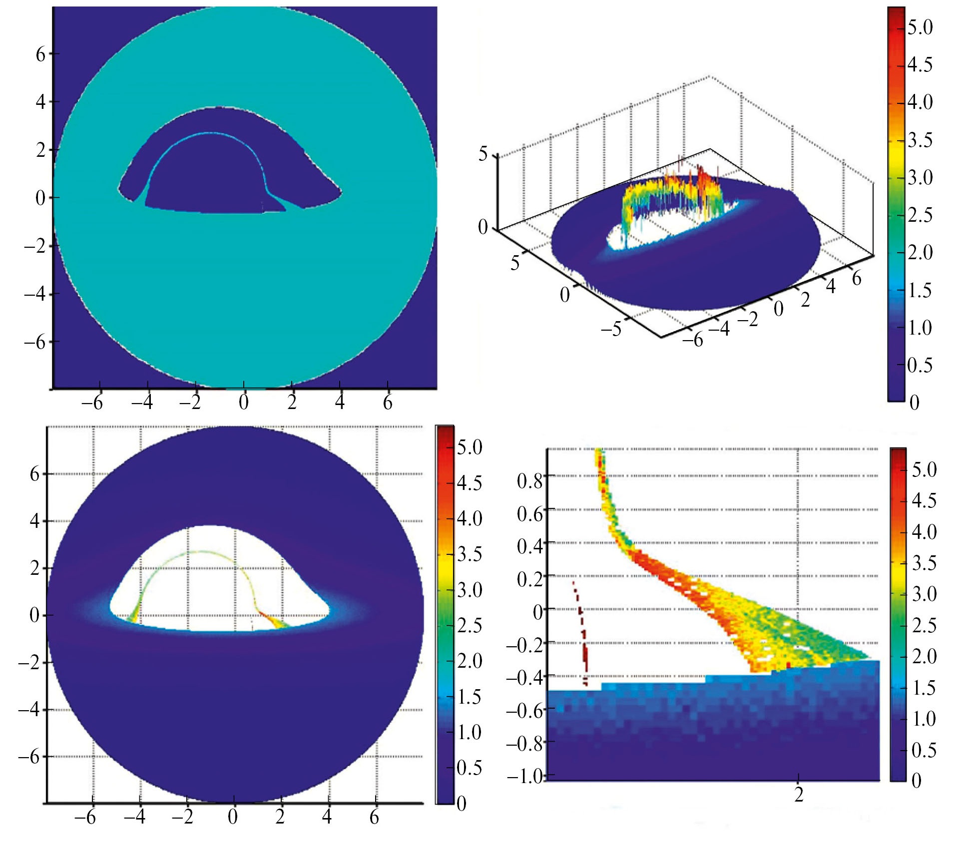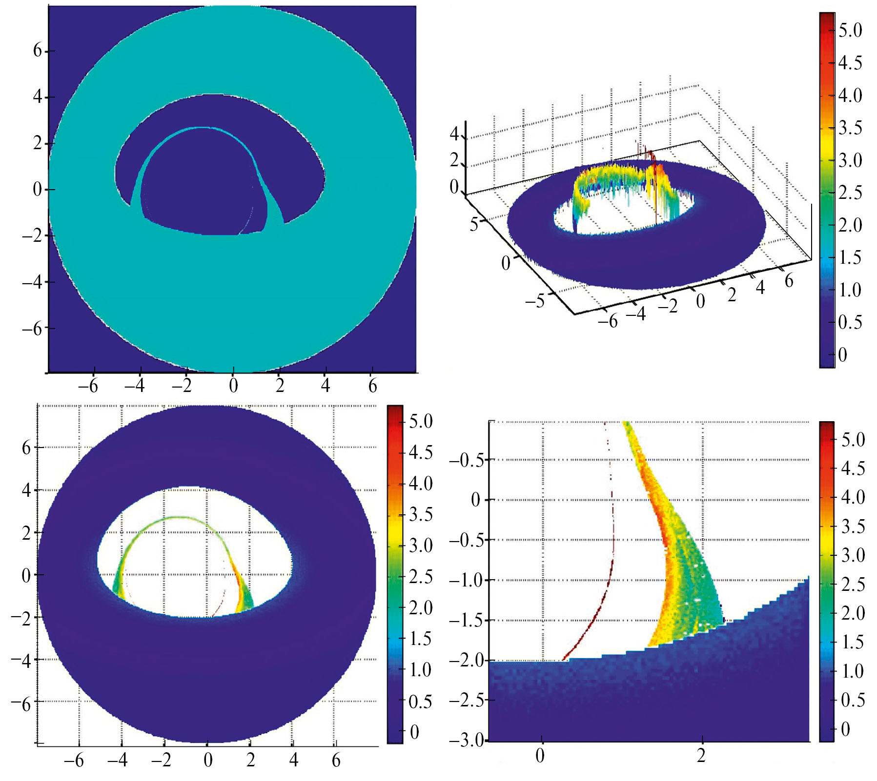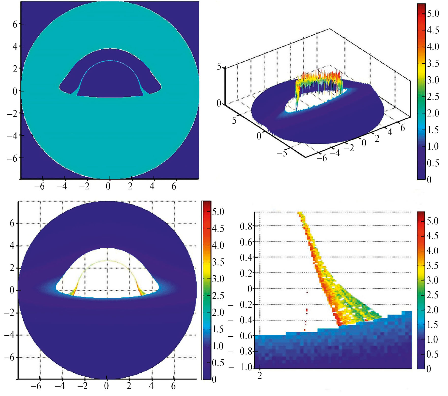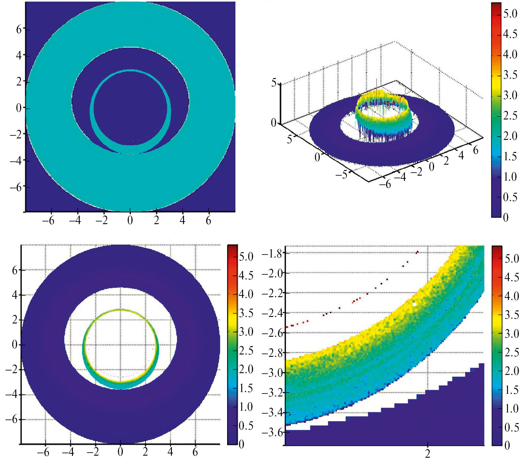 Особый интерес для теоретического анализа представляет верхняя левая панель рисунков, для исследования возможностей наблюдения построенных изображений — нижняя левая.
