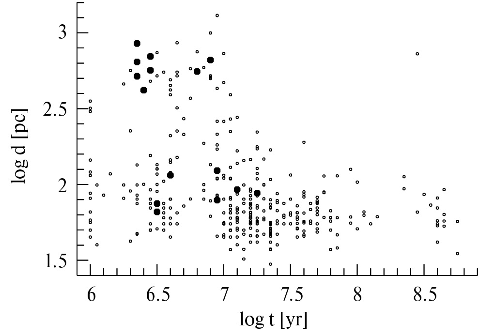 - Диаметр ОЗО в NGC 3963, пк, типичен для звездных комплексов, а в NGC 7292, пк, для звездных ассоциаций.