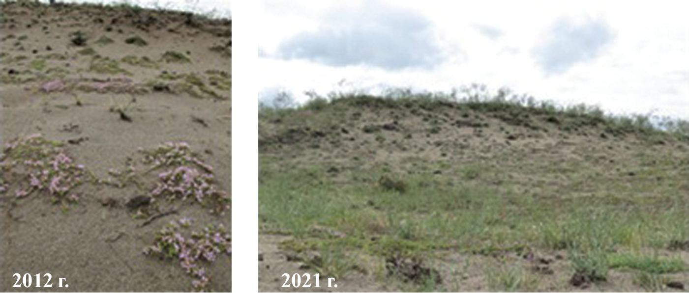 It is established that fluctuations occurring in different years in the CP located in the sandy steppe are expressed in the alternation of the processes of aging (in 2012) and rejuvenation (in 2021). The rejuvenation of the CP in 2021 occurs due to intensive particulation in young and mature generative states and coincides with a more favorable humidification regime. In addition, there is a decrease in ecological and average density due to a decrease in the proportion of old individuals over the past 10 years.