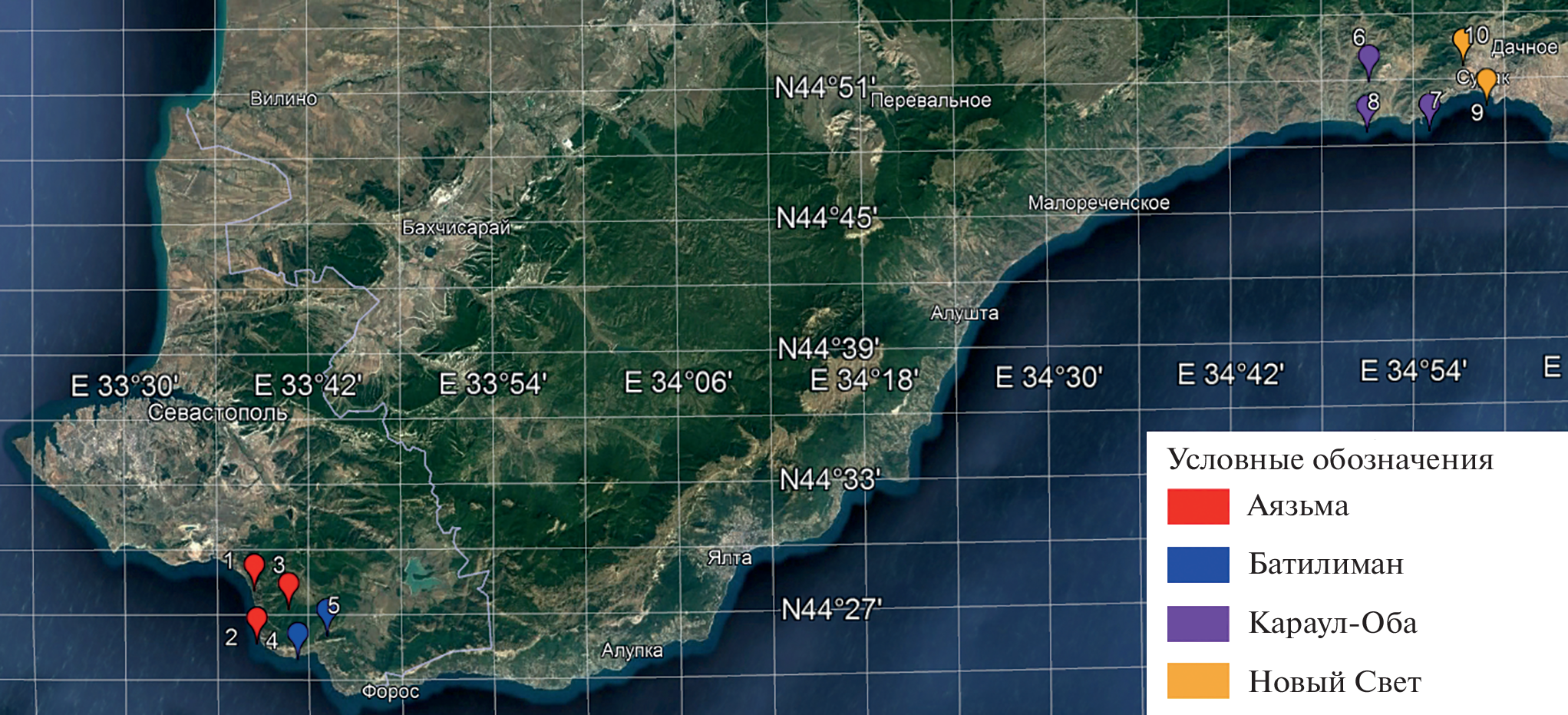 - Antyufeev V.V. 2003. Mikroklimaticheskaya izmenchivost' termicheskikh resursov vegetatsionnogo perioda na Yuzhnom beregu Kryma [Microclimatic variability of thermal resources of the growing season on the southern coast of Crimea]. – Trudy Nikit. botan. sada. 121: 137–145 (In Russ.).