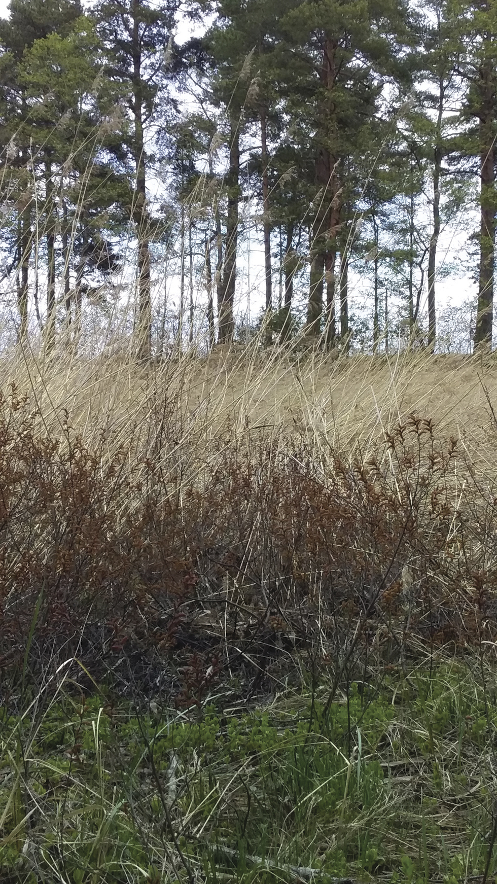 Субпопуляция А (рис. 1). Произрастает на песчаном участке, отделенном от Финского залива первой узкой дюнной грядой и сформировавшимися за ней зарослями тростника. При изменении уровня воды в заливе и во время весеннего снеготаянья регулярно затопляется. Испытывает интенсивную рекреационную нагрузку. Восковник произрастает узкой прерывистой полосой на границе между зарослями тростника и второй песчаной грядой с сосняком бруснично-вороничным. В полосе тростниковых зарослей (ширина 50–60 м) помимо Phragmites australis (проективное покрытие 80%) произрастает Galium palustre (5%), Carex acuta (3%), C. elangata (1%), Sium latifolium (1%) и мхи (10%): Sphagnum squarosum, Sphagnum sp., Calliergon cuspidatum. В древостое сосняка бруснично-вороничного кроме Pinus sylvestris (высотой 12–15 м) отмечена Sorbus aucuparia (2–4 м), а также единичные особи Viburnum opulus (0.6 м) и Aronia melanocarpa (0.7 м). В напочвенном покрове преобладает Impetrum nigrum (30%), Vaccinium vitis-idaea (20%), V. myrtillus (3%), Deschampsia caespitosa (7%), Carex nigra (2%), Fragaria vesca (5%) и Melica nutans (2%). Отмечены единичные экземпляры Luzula pilosa и Hieracium umbellatum. Из-за вытаптывания моховой покров практически отсутствует. В зоне произрастания восковника, достигающего покрытия до 60%, встречается Alnus glutinosa (10–12 м), Frangula alnus (1.5–3 м), Salix cinerea (2.5 м) и S. starkeana (3 м). Напочвенный покров состоит из Chamaepericlymenum suecicum (до 15%), Phragmites australis (10%), Calamagrostis epigeios (3%), Sium latifolium (2%), Galium palustre (1%), Carex acuta (1%), C. elangata (1%). Эта субпопуляция разбита на фрагменты, различающиеся по виталитету растений. В некоторых фрагментах высота восковника составляет 1.2 м, в других восковник активно усыхает, его высота не превышает 0.7 м. Обнаружены только мужские растения.