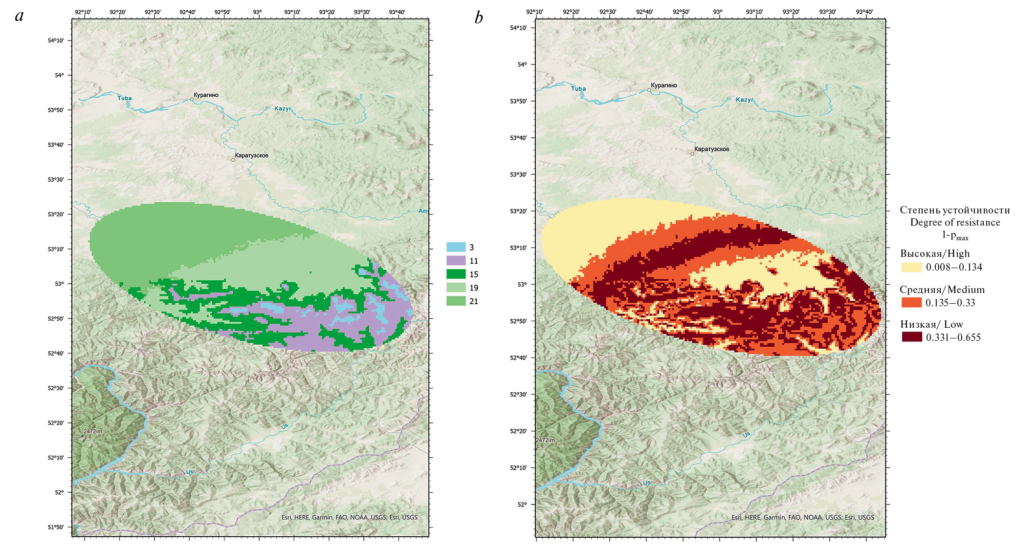 Более выровненный характер значений модельной вероятности характеризует большую степень неопределенности отнесения к классу, что может быть соотнесено с положением вне климатического оптимума, способствующим меньшей устойчивости к изменениям климата растительных сообществ и экосистем в целом. Наоборот, явно выраженный максимум для определенного типологического или высотно-поясного подразделения свидетельствует о развитии экосистем в оптимальных и близких к ним климатических условиях и потенциально большей устойчивости экосистем к их изменениям. Такой дифференцированный подход к оценке возможного отклика растительного покрова на изменения климатопов высотных поясов позволил определить высотно-поясные особенности потенциала развития экосистем с учетом региональной специфики оробиома. Для ранжирования потенциала современного состояния экосистем и их возможных трансформаций предложен показатель 1–pmax, где pmax является максимальным значением апостериорной вероятности соответствующего класса. С использованием способа выделения классов на основе квантилей выделены три ступени устойчивости: высокий, средний и низкий. Модельные показатели возможно использовать в качестве ориентиров, которые следует учитывать при прогнозе развития растительности, требующего обязательного анализа трансформации горных экосистем на основе специфики биотического компонента, его связей с абиотическими условиями и характера сукцессионного развития, инициированного климатогенными факторами.