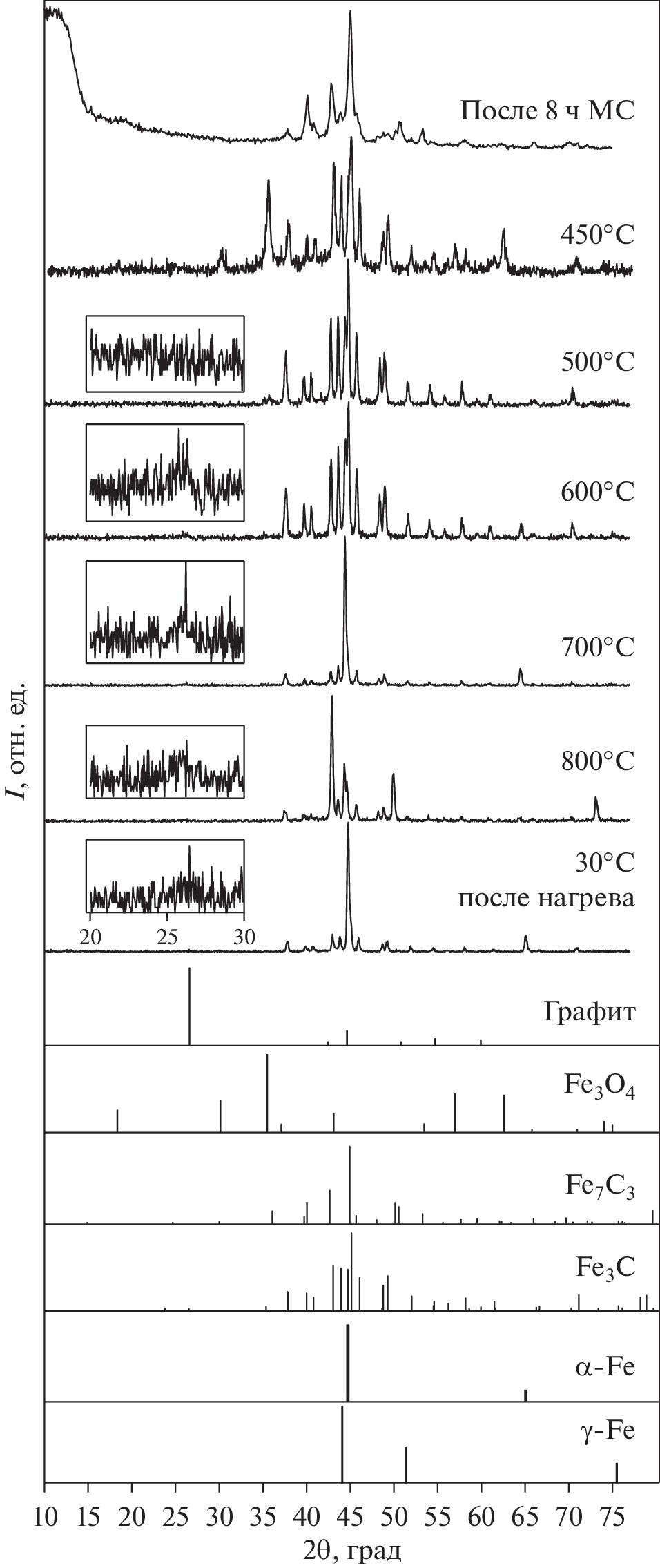 - Campbell S.J., Wang G.M., Calka A., Kaczmarek W.A. Ball milling of Fe75-C25: formation of Fe3C and Fe7C3 // Mater. Sci. Eng. A. V. 1997. V. 226-228. P. 75–79.