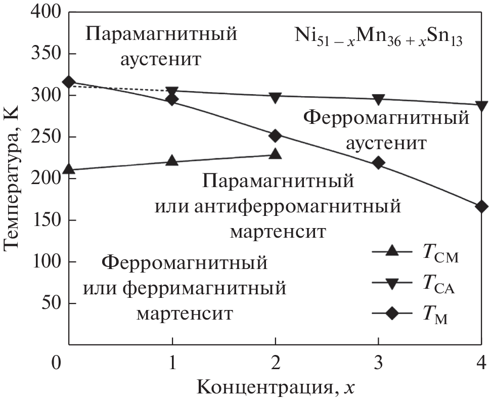 3. Krenke T., Acet M., Wassermann E.F., Moya X., Manosa L., Planes A. Martensitic transformations and nature of ferromagnetism in the austenitic and martensitic states of Ni–Mn–Sn alloys // II Phys. Rev. B. 2005. V. 72. P. 014 412.