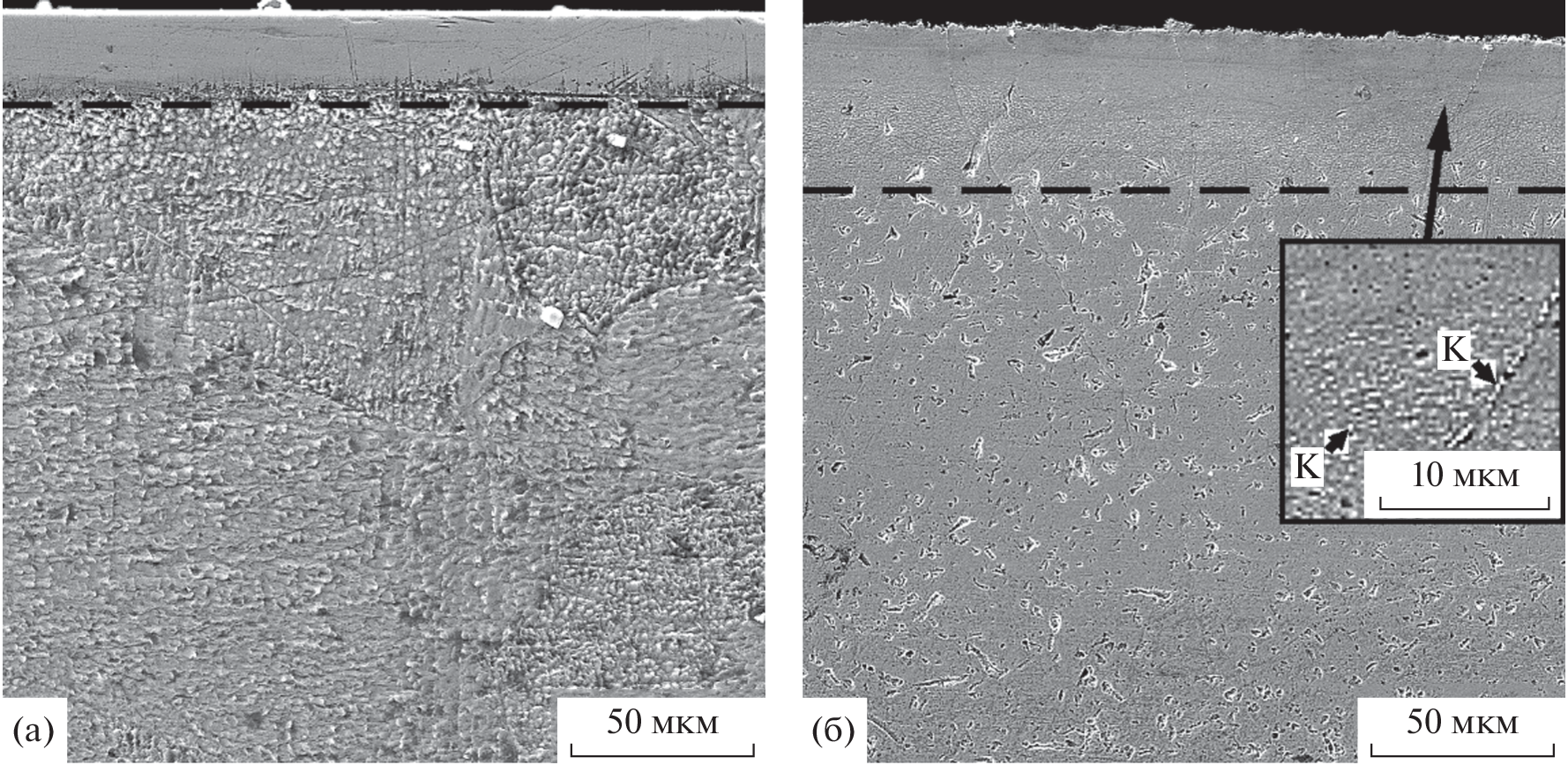 The features of the structure and phase composition of corrosion-resistant austenitic chromium–nickel steel (16.80 wt % Cr, 8.44 wt % Ni) subjected to carburizing in electron beam plasma at temperatures of 350 and 500°C, frictional treatment with a sliding indenter, and a combination of frictional treatment and plasma carburizing have been considered. It has been established that plasma carburizing results in the formation of a modified surface layer consisting of carbon-saturated austenite and carbides (Cr23C6, Fe3C); in this case, the formation of γC-phase occurs only at a temperature of 350°C. The depth of a modified layer increases with an increase in the carburizing temperature. It has been shown that it is useful to perform combined frictional treatment and plasma carburizing at a carburizing temperature of 350°C, since in this case the deformation-induced structure formed as a result of frictional treatment is preserved, and the precipitated carbides remain highly dispersed. In this case, frictional treatment should provide the formation of the deepest