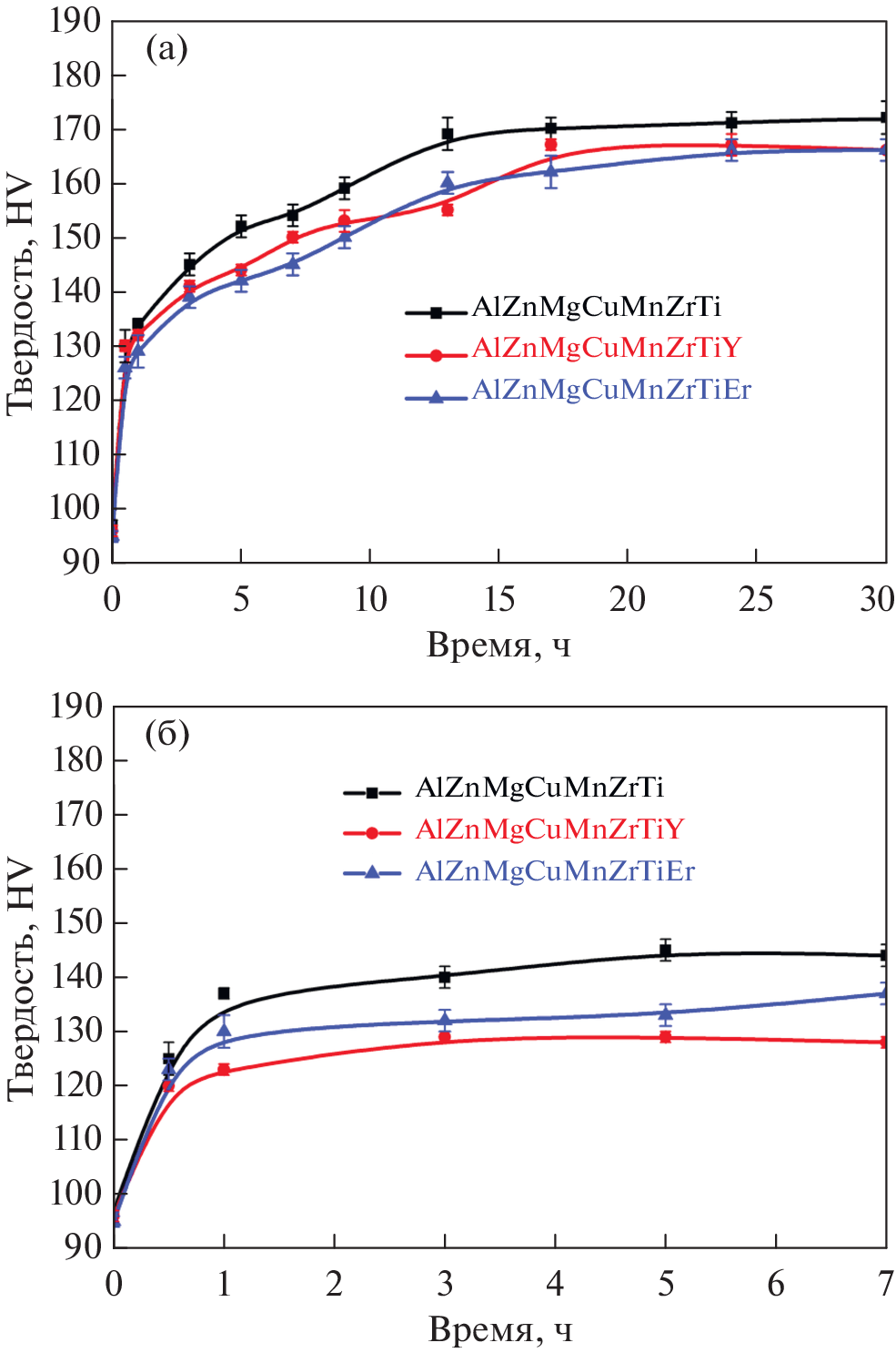 - Glavatskikh M.V., Barkov R.Yu., Khomutov M.G., Pozdniakov A.V. The Effects of Yttrium and Erbium on the Phase Composition and Aging of the Al–Zn–Mg–Cu–Zr Alloy with a High Copper Content // Phys. Met. Metall. 2022. V. 123. P. 617–623.