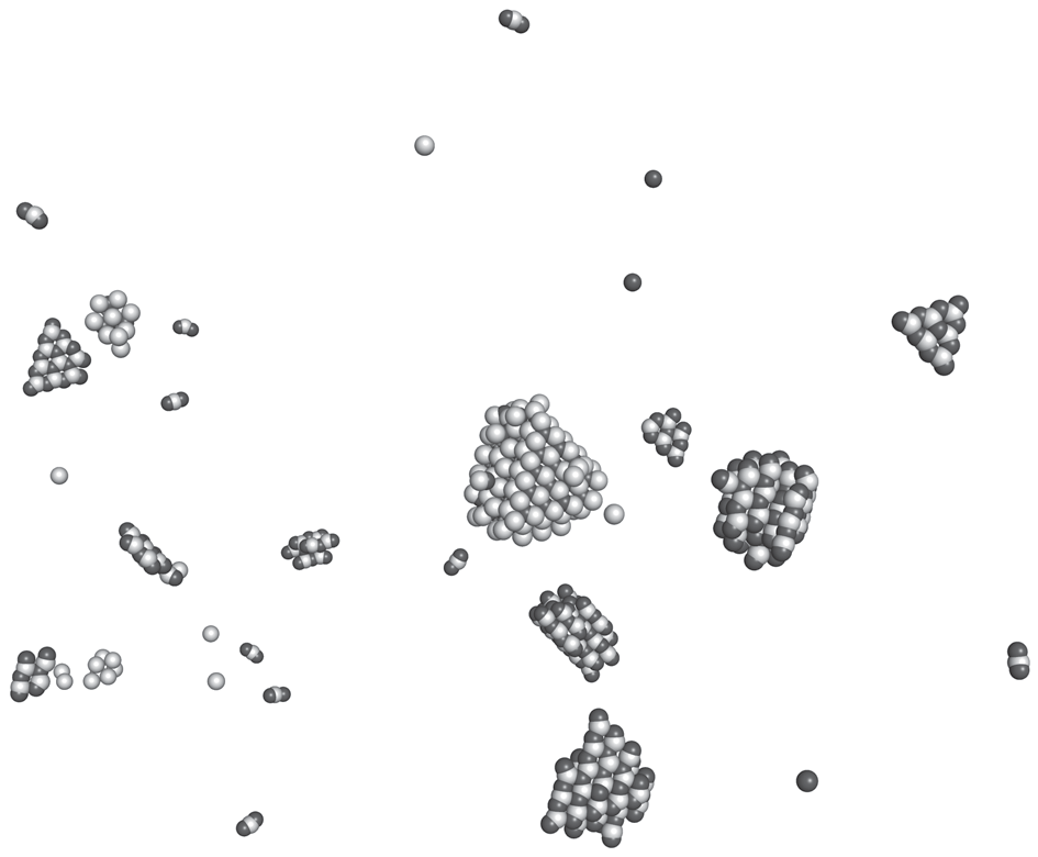 - Релаксация каскада смещений, инициированного ПВА с энергией кэВ в α-титане при температуре T = 900 К. https://youtu.be/JkJKSaPwcfY.