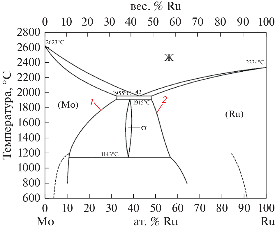 - Okamoto H. Mo-Ru (Molybdenum-Ruthenium) // J. Phase Equilibria 2000. V. 21. № 6. P. 572.