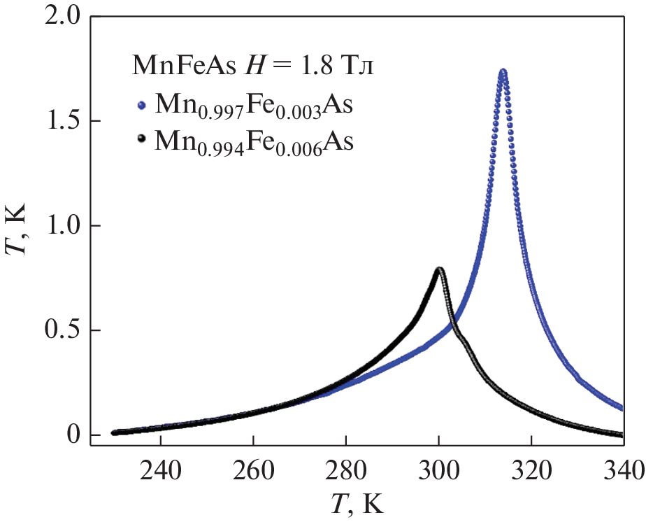 - Wada H., Tanabe Y. Giant magnetocaloric effect of MnAs1 – xSbx // Appl. Phys. Lett. 2001. V. 79. P. 3302–3304.