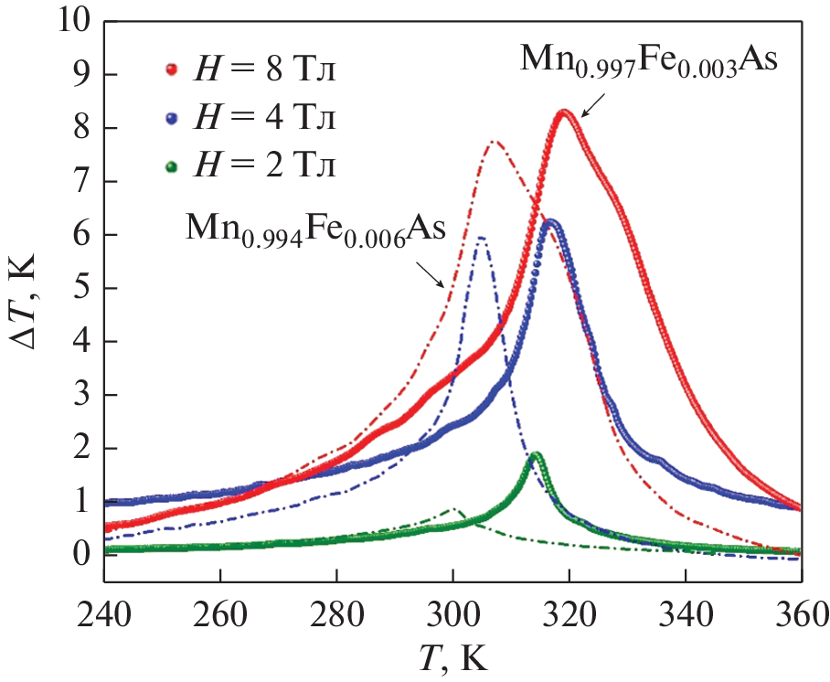 - Tocado L., Palacios E., Burriel R. Adiabatic measurement of the giant magnetocaloric effect in MnAs // Journal of Thermal Analysis and Calorimetry. 2003. V. 84. P. 213–217.