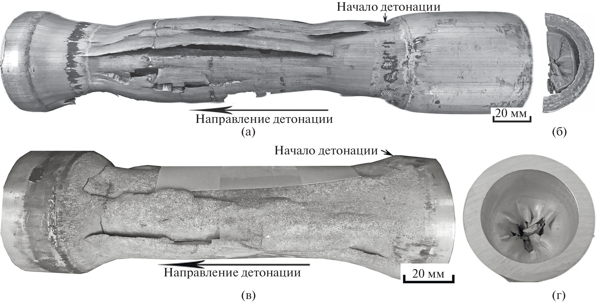 Рассмотрено деформационное поведение толстостенных полых цилиндрических оболочек из сплава АМг6 (Al–6.1% Mg–0.6% Mn–0.1% Ti–0.2% Si, мас. %), нагруженных по 8-ми точечной схеме инициирования накладного взрывчатого вещества (ВВ). Интенсивность взрывного нагружения регулировалась количеством ВВ. Установлено, что в зависимости от интенсивности воздействия и геометрических характеристик оболочек наблюдаются разные сценарии их схождения. Определены условия формирования откольных внутренних слоев, изучены эволюция структуры при высокоскоростной деформации вдоль радиуса и по длине оболочек и изменение твердости вдоль радиуса оболочек. Проведено рентгенографирование динамики процессов деформирования оболочек в разные промежутки времени. Определены скорости движения наружных и внутренних слоев оболочек и скорости их деформации при разном количестве ВВ.
