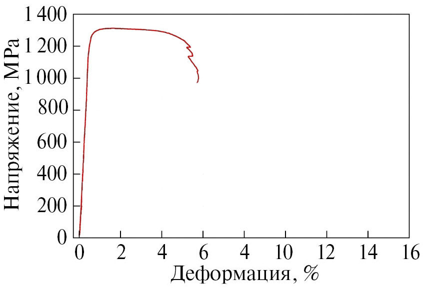 Рис. 2. Зависимость напряжения от деформации σ(ε) при растяжении образца 04Х13Н8МТЮ–ВИ.