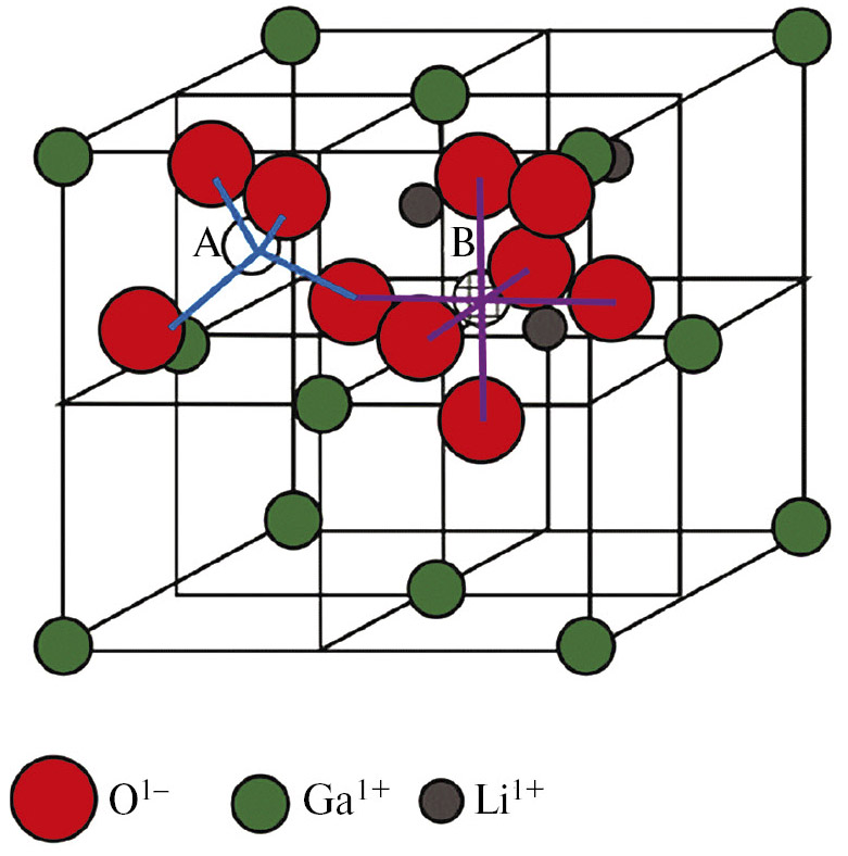Элементарная ячейка монокристалла литийгаллиевой шпинели Li0,5Ga2,5O4 изображена на рис. 1. Элементарная ячейка содержит кислородные октаэдры и тетраэдры, внутри которых расположены магнитные зонды – ионы кобальта Cо²⁺, занимающие А (тетраэдрические позиции) и В (октаэдрические позиции).
